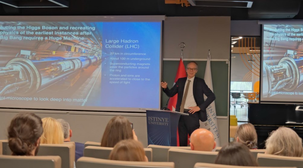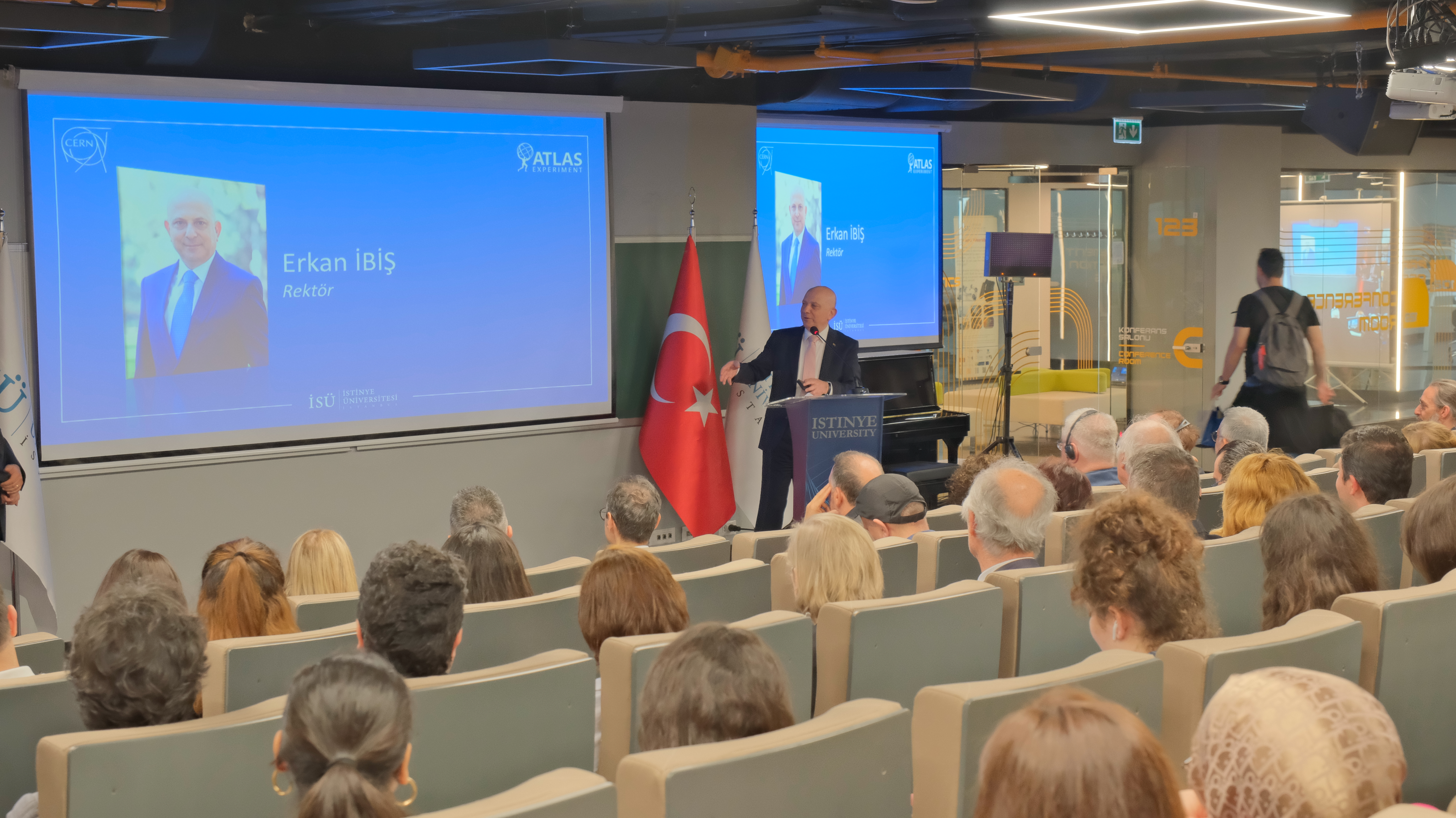 The ISU's official membership in the ATLAS Experiment and its scientific contributions within the field of particle physics at the world's largest particle physics research laboratory CERN, were shared during an informational launch held on May 31st at Istinye University's Vadi Campus. ISU Rector Prof. Dr. Erkan İbiş, Chairman of the Board of Trustees Dr. Muharrem Usta, ATLAS Project Leader and National Contact Physicist Prof. Dr. Serkant Ali Çetin, CERN’s Director for Research and Computing Joachim Mnich, ATLAS Spokesperson Andreas Hoecker attended to the event, as well as academicians and students.