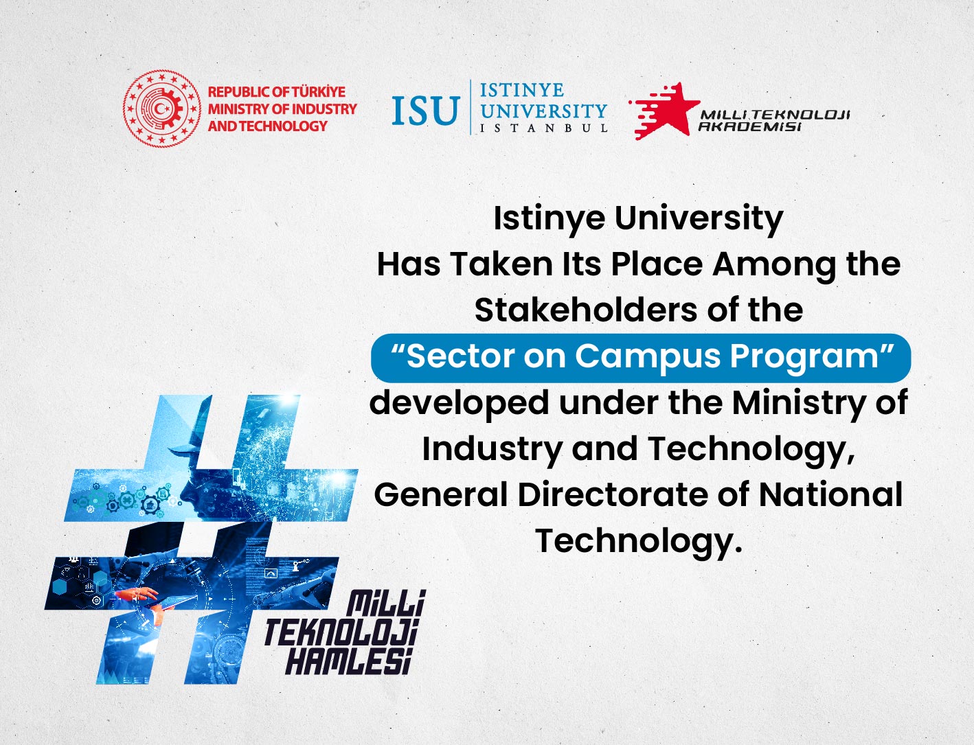 Istinye University has taken its place among the stakeholders of the "Sector on Campus Program" developed under the Ministry of Industry and Technology, General Directorate of National Technology.