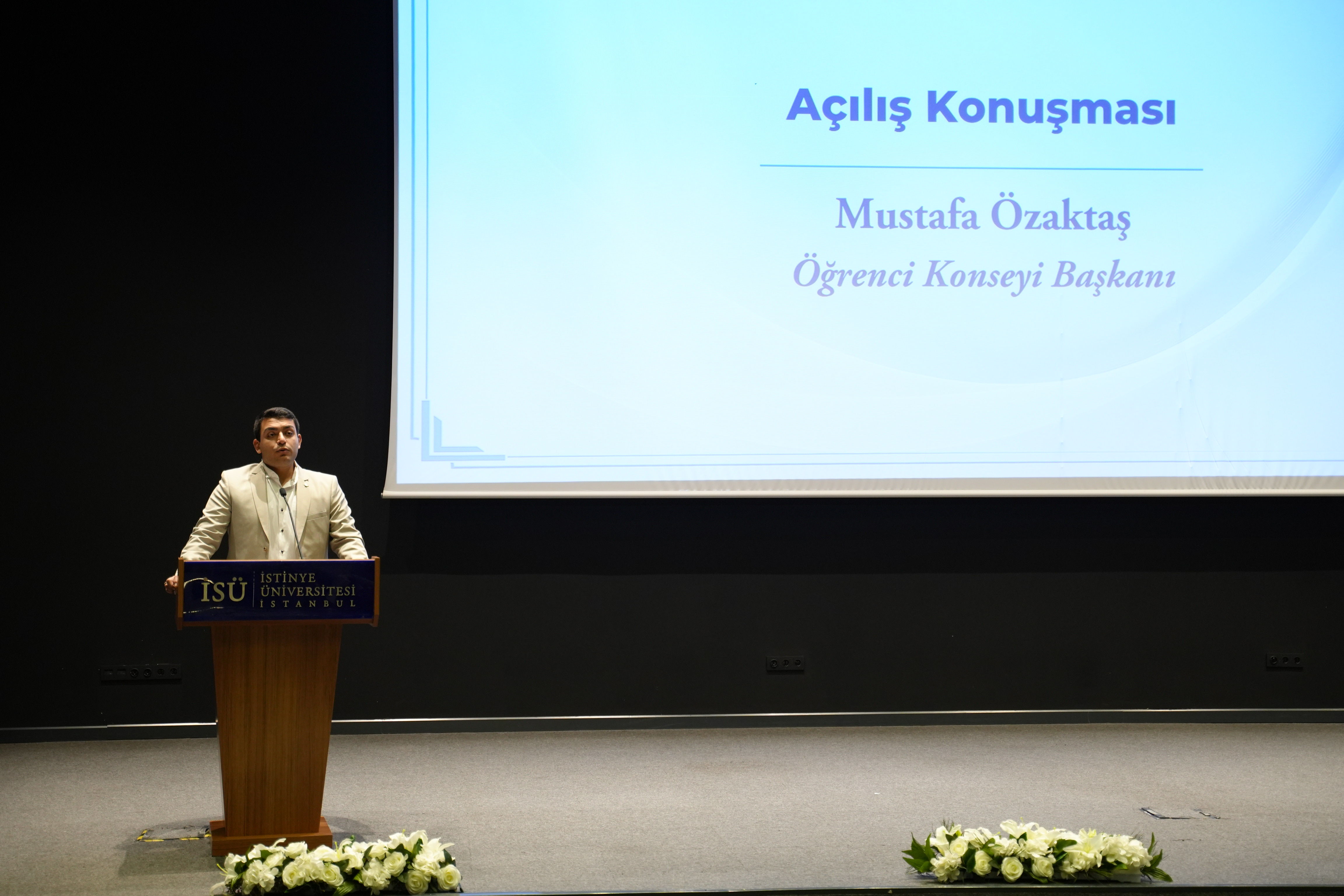 During the ceremony, where the emphasis on the theme "100th anniversary of the Republic of Türkiye" was strongly felt, following the National Anthem, a special presentation prepared by the Department of Management Information Systems of the Faculty of Economics, Administrative, and Social Sciences at Istinye University was played. This presentation used artificial intelligence to convey Atatürk's words and messages regarding the centenary of the Republic.