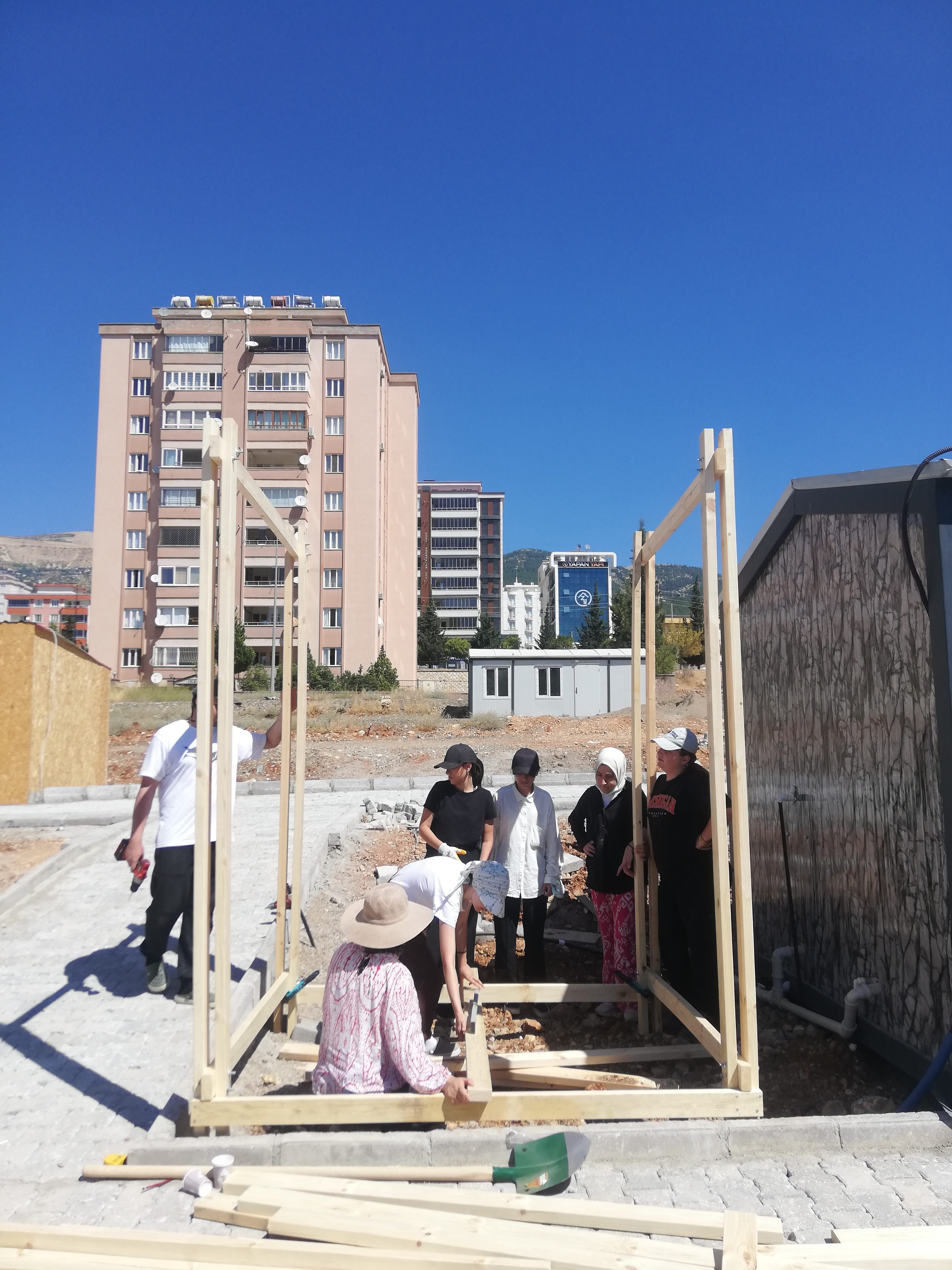 The project, encompassing both design and implementation phases, aimed to create a new social space in Mimkent container office area, for architects and engineers who lost their offices at 6th February earthquakes. ISU students actively contributed to the project, striving to achieve this goal. They played a significant role not only during the 2-week implementation phase in Kahramanmaraş but also during the 2-week design phase in Istanbul.