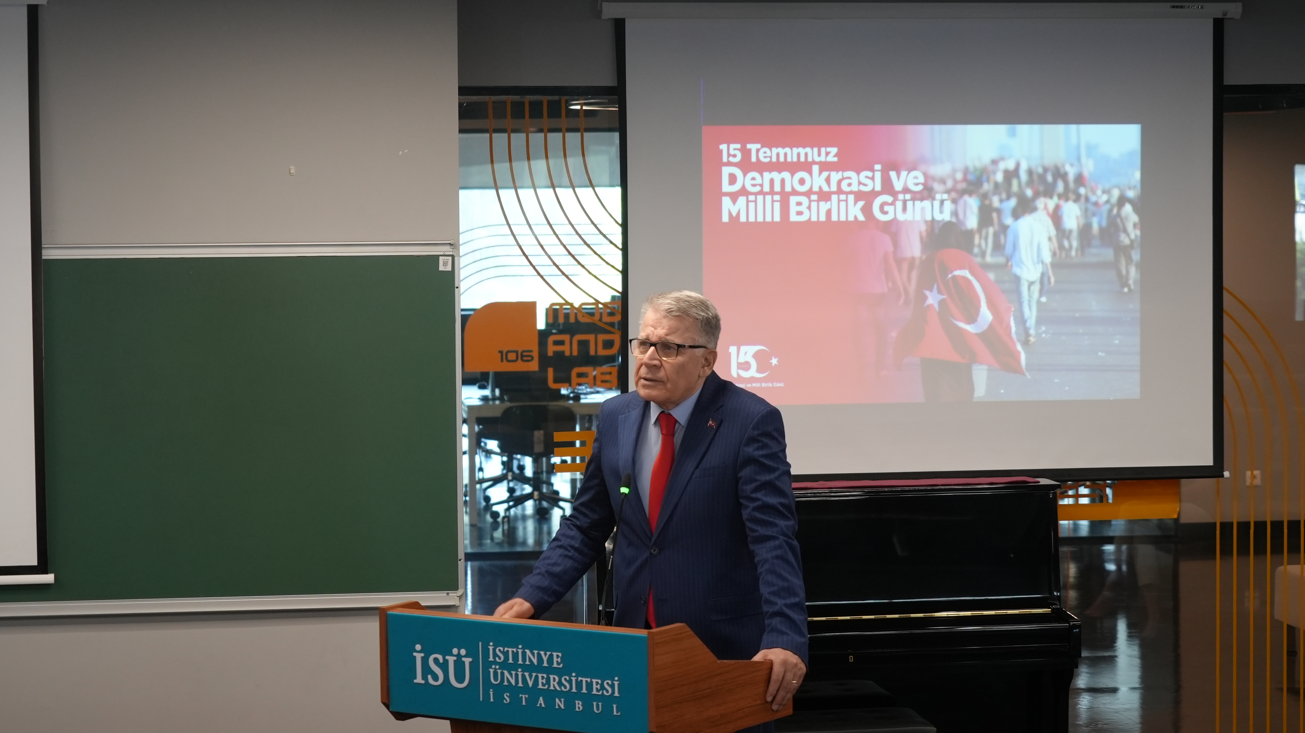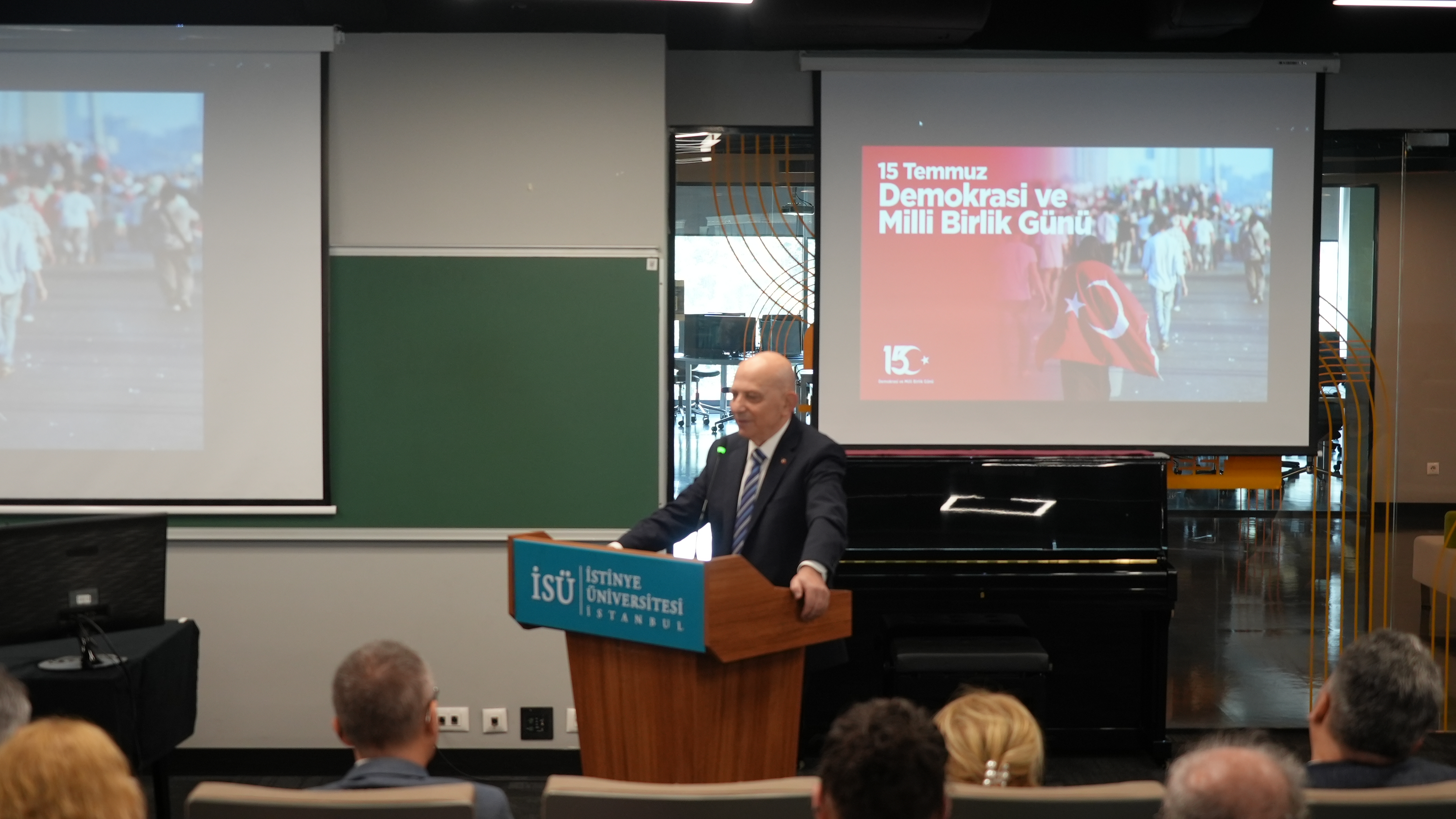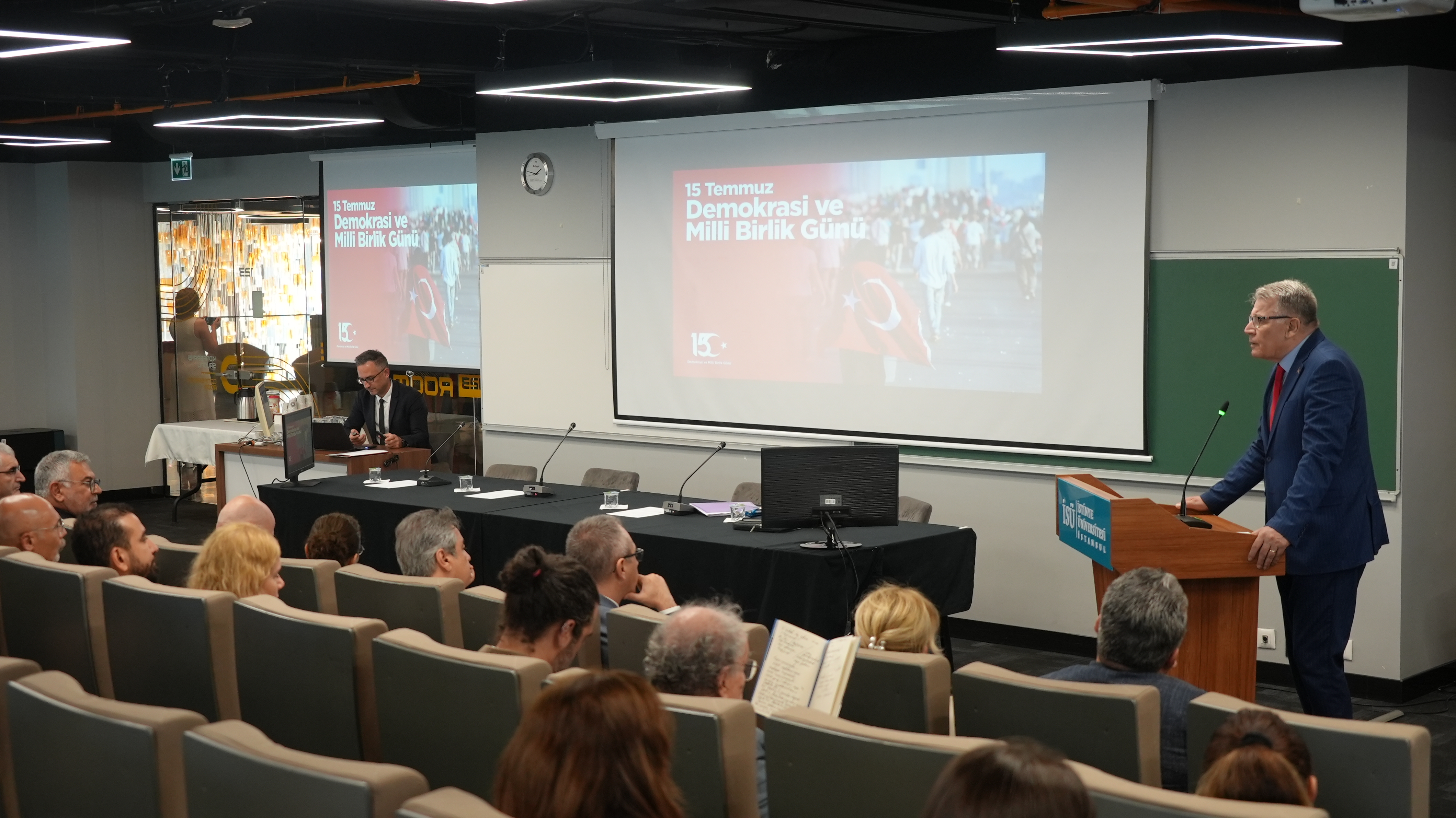 The panel titled "15 July: Attempt to Occupy Türkiye" organized by the Rectorate for the 15 July Democracy and National Unity Day started with the speech of our Rector Prof. Dr. Erkan İbiş commemorating the martyrs of 15 July.