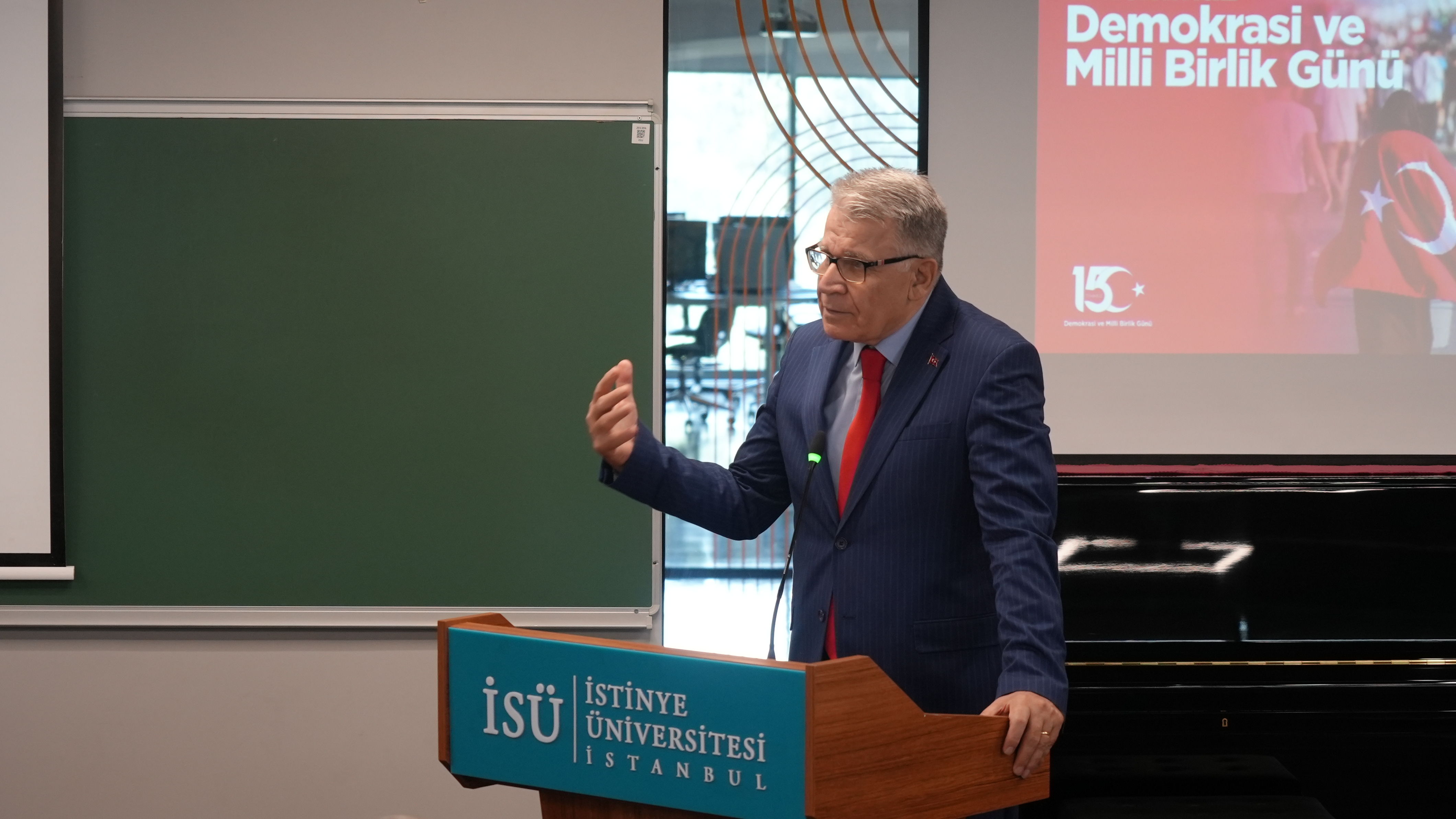 Security and Defense Strategies Application and Research Center (GÜVSAM) Coordinator İsmail Hakkı Pekin spoke at the panel titled "15 July: Attempt to Occupy Türkiye" organized by the Rectorate for the 15 July Democracy and National Unity Day.