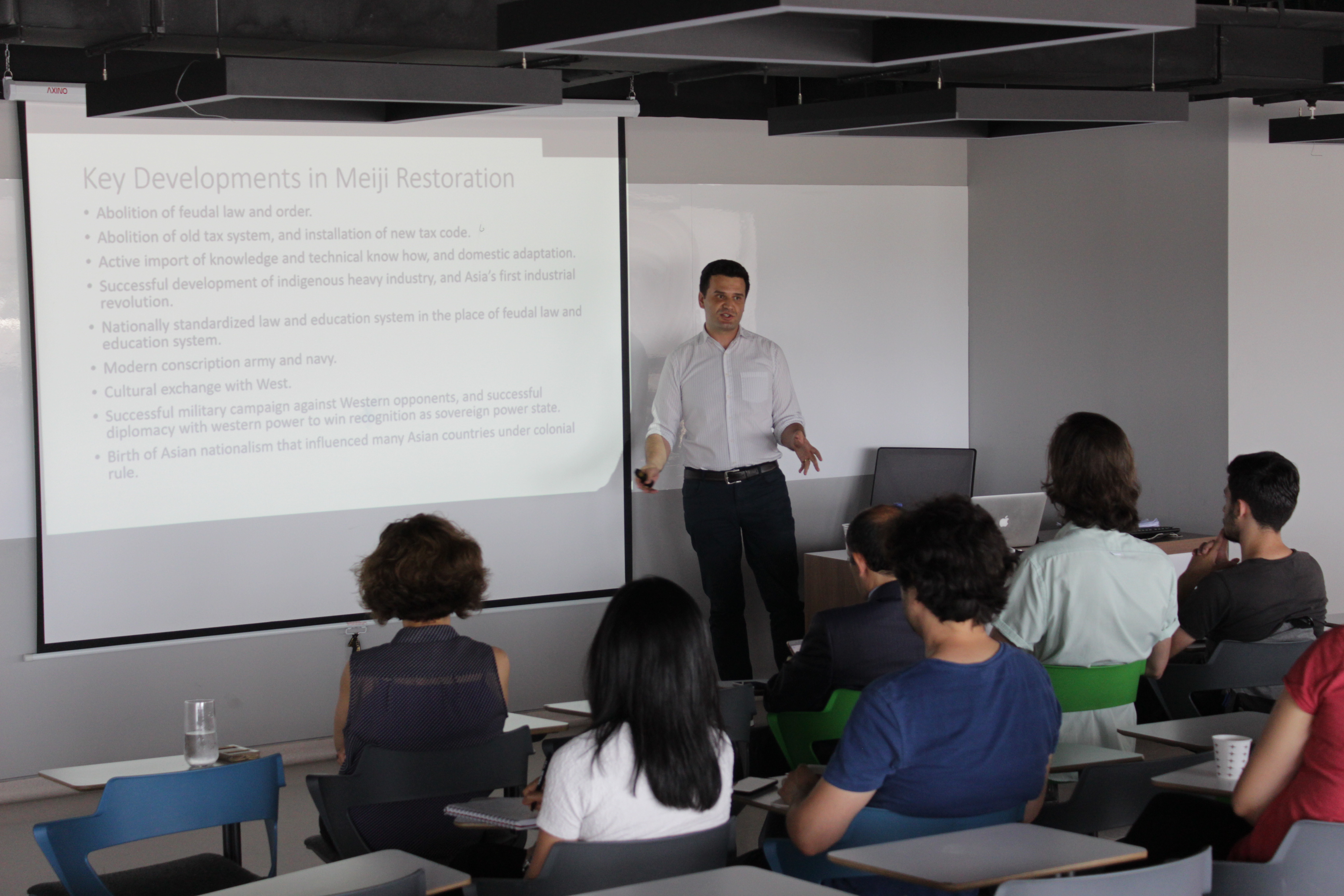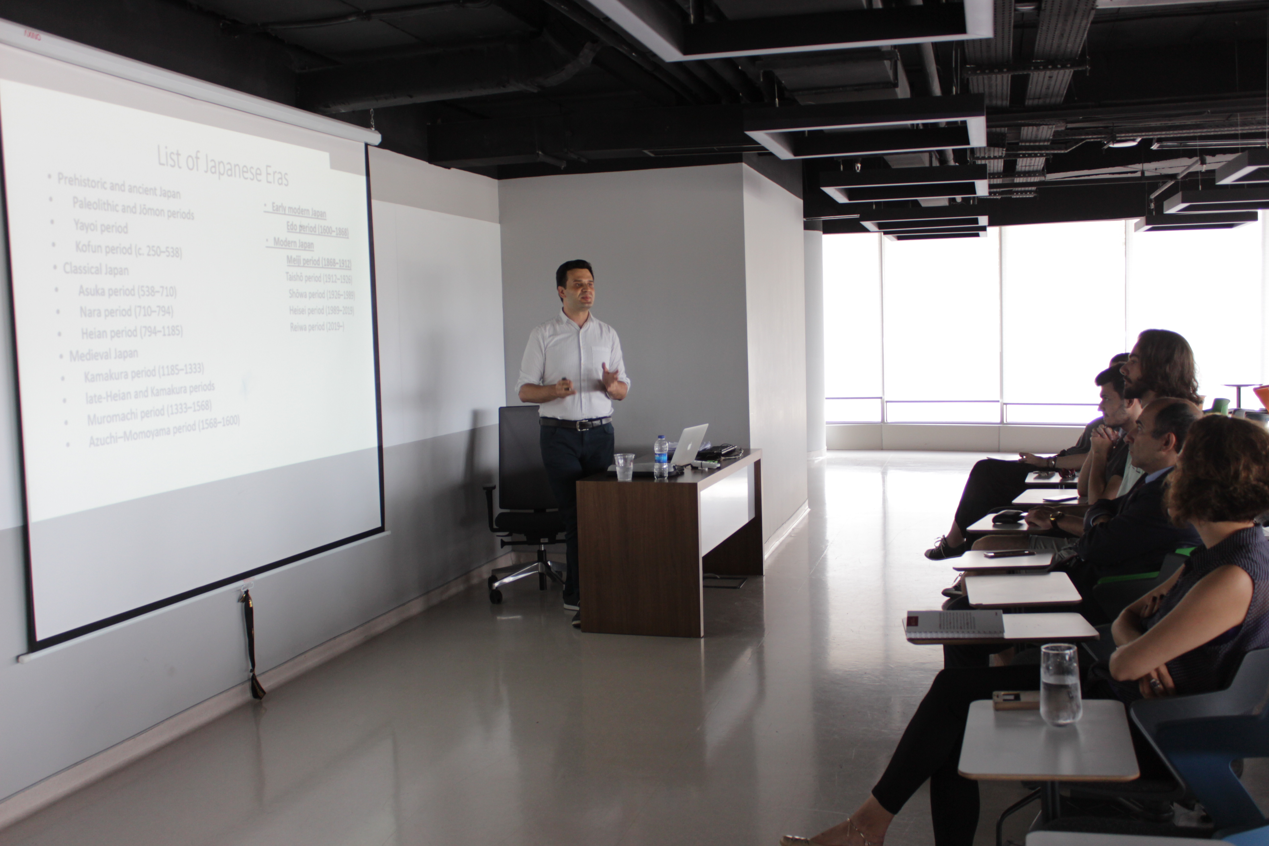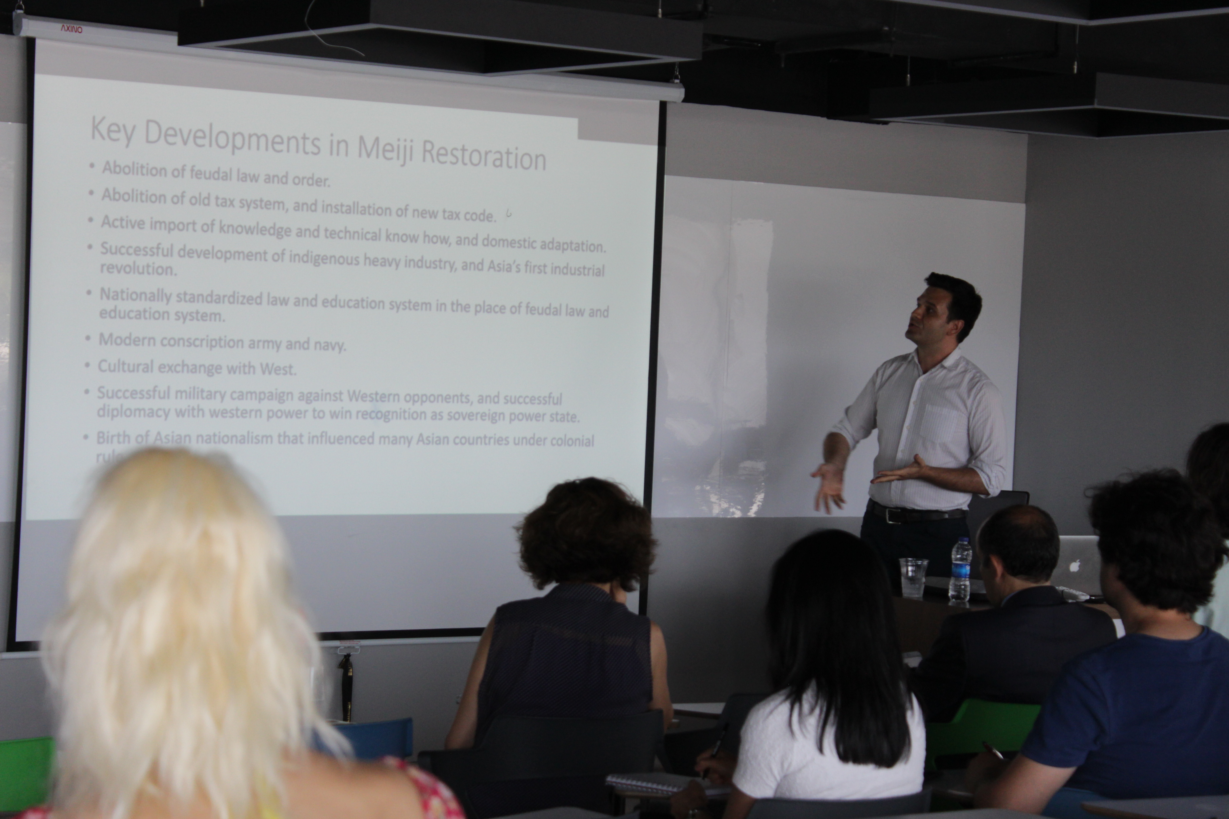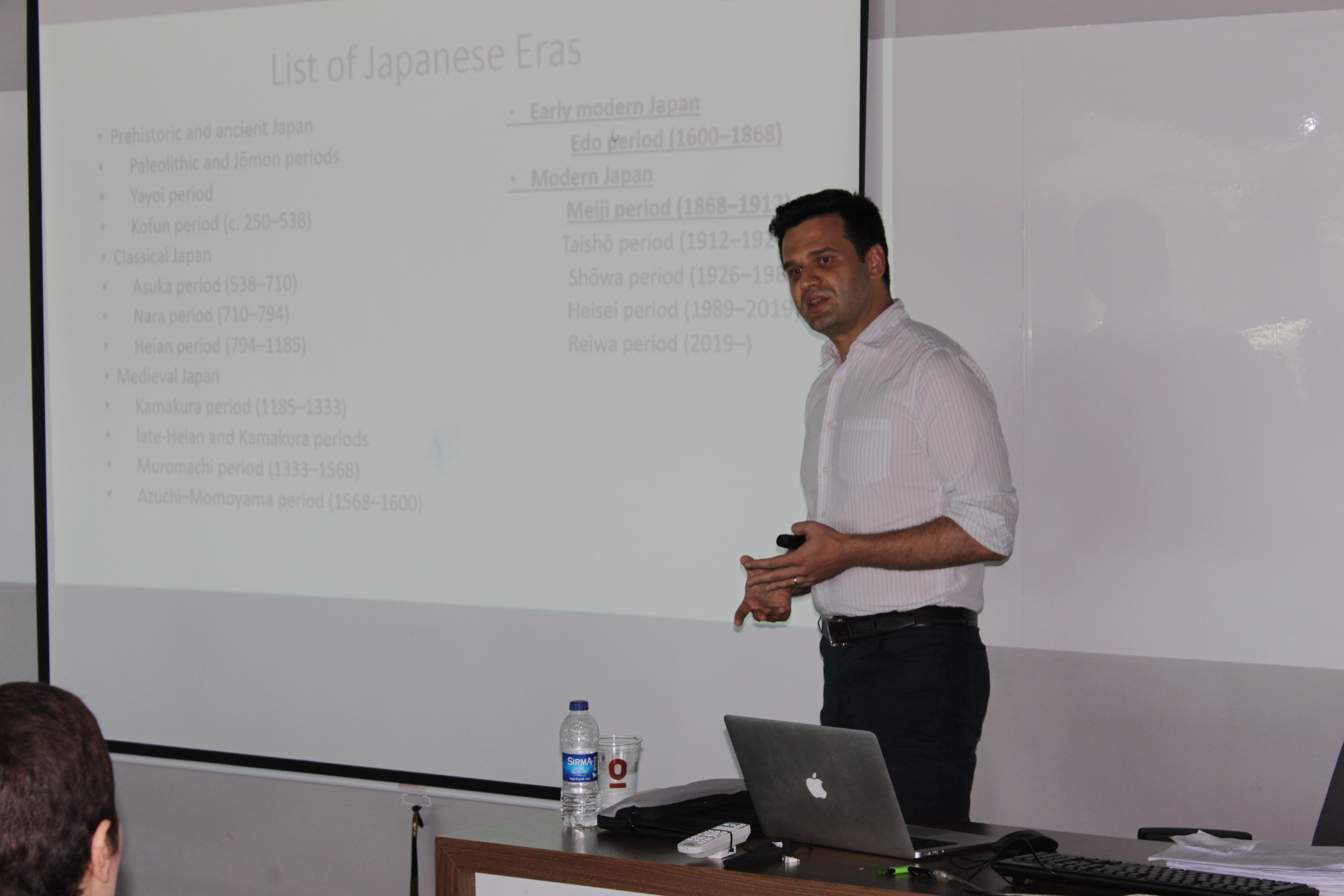 Hasan Topaçoğlu, who worked as an international researcher at Suntory Foundation Research Institute in Japan, made a presentation about Meiji 100th Anniversary Activities, which was celebrated as one of the biggest media events of Japan after World War II. Academics and students attended the event organized by Radio, Television and Cinema department.