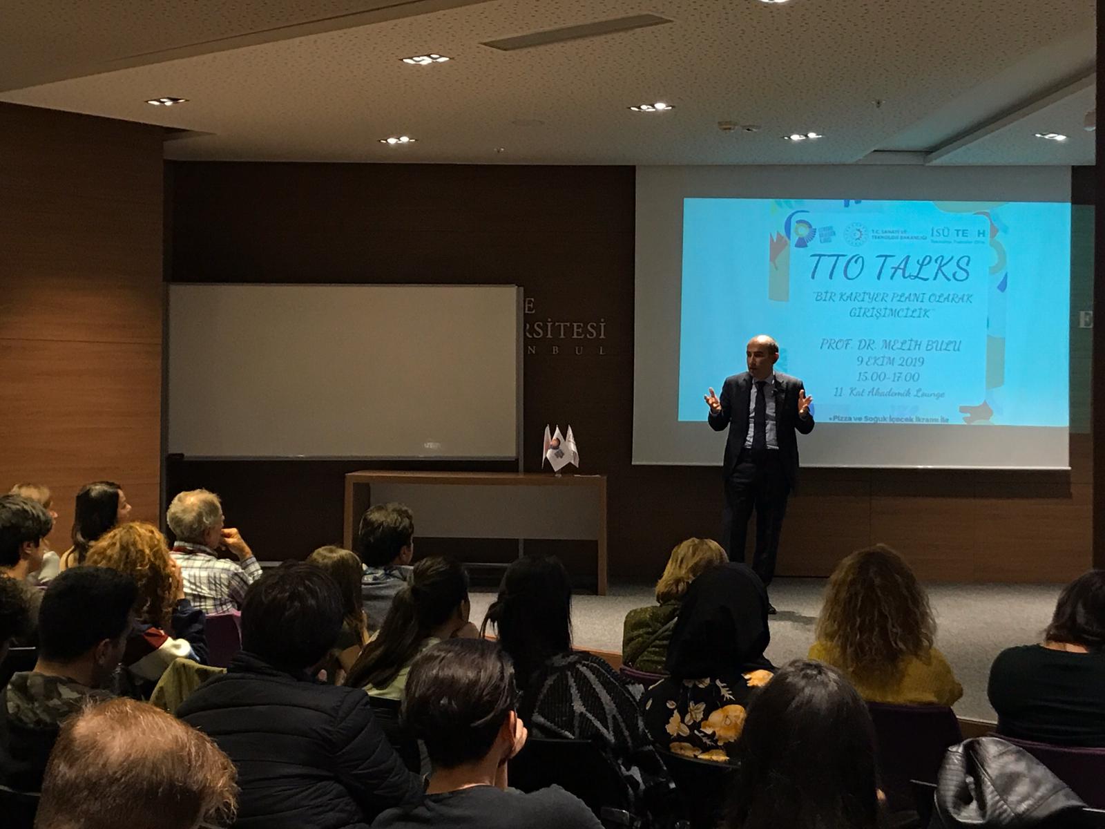 The first in a line of events to be held for the TTO Talks series, organized by Istinye University’s Technology Transfer Office, saw our Rector Prof. Dr. Melih Bulu speak about the topic “Entrepreneurship as a Career Plan”.