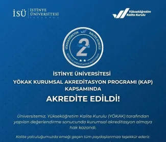As a result of the evaluations conducted within the scope of the Institutional Accreditation Program (IAP) carried out by the Higher Education Quality Council (THEQC), our university has been awarded institutional accreditation. The program aims to strengthen quality assurance systems in higher education institutions, support institutional sustainability, and enhance international competitiveness.