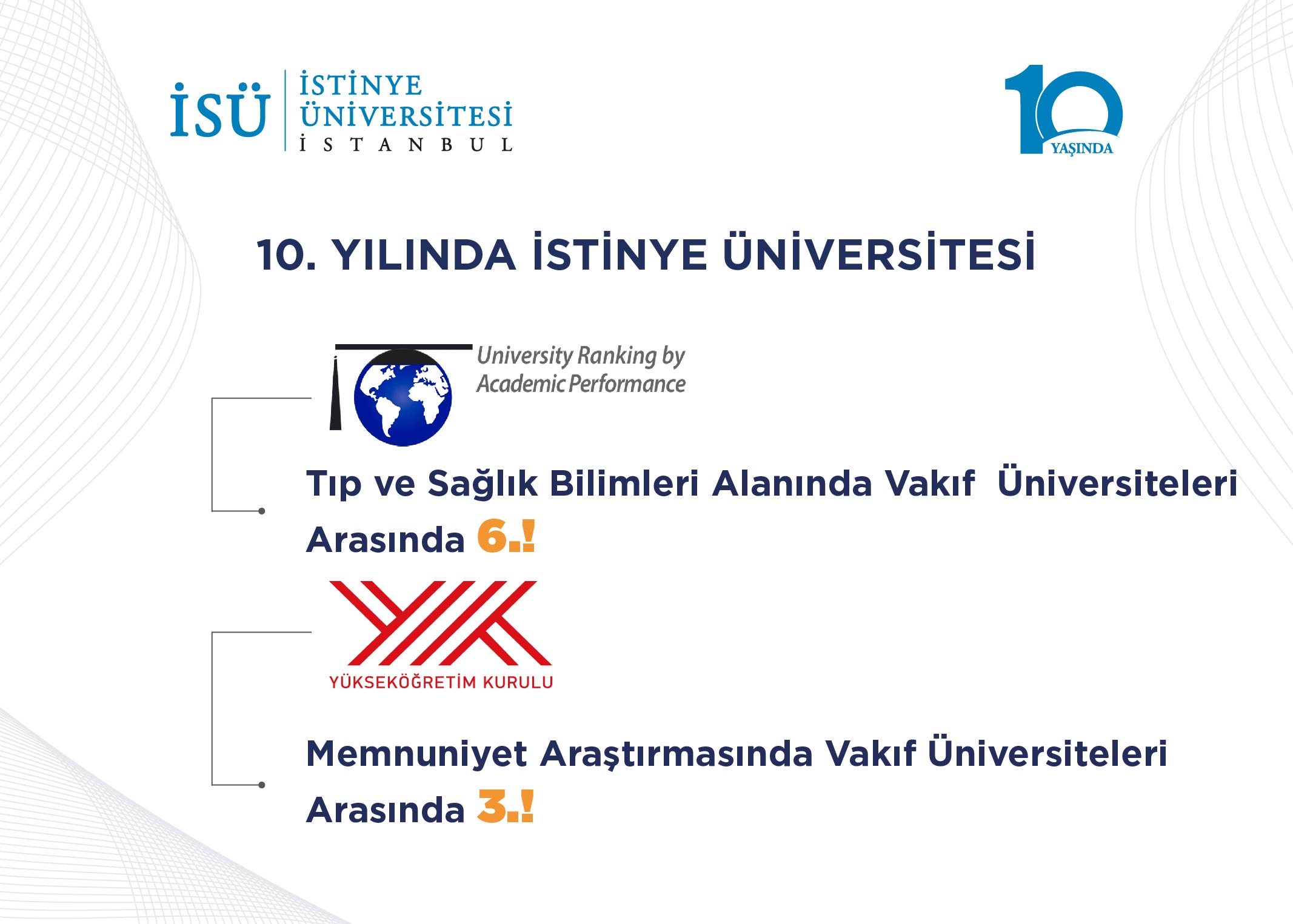 In addition to the URAP Field Rankings, Istinye University celebrated its 10th anniversary with remarkable performances across various national and international evaluation platforms: