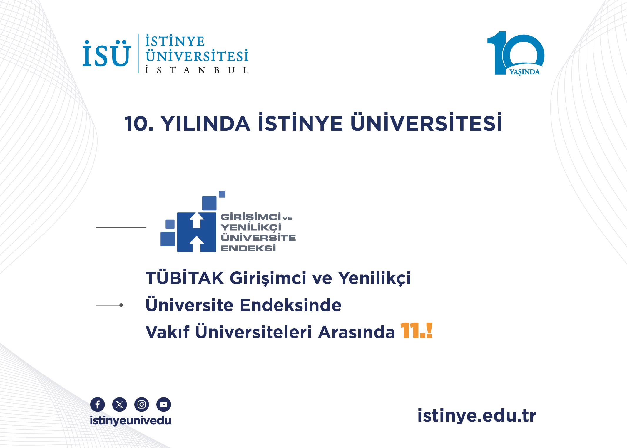 - Ranked 11th among foundation universities in the TÜBİTAK Entrepreneurial and Innovative University Index