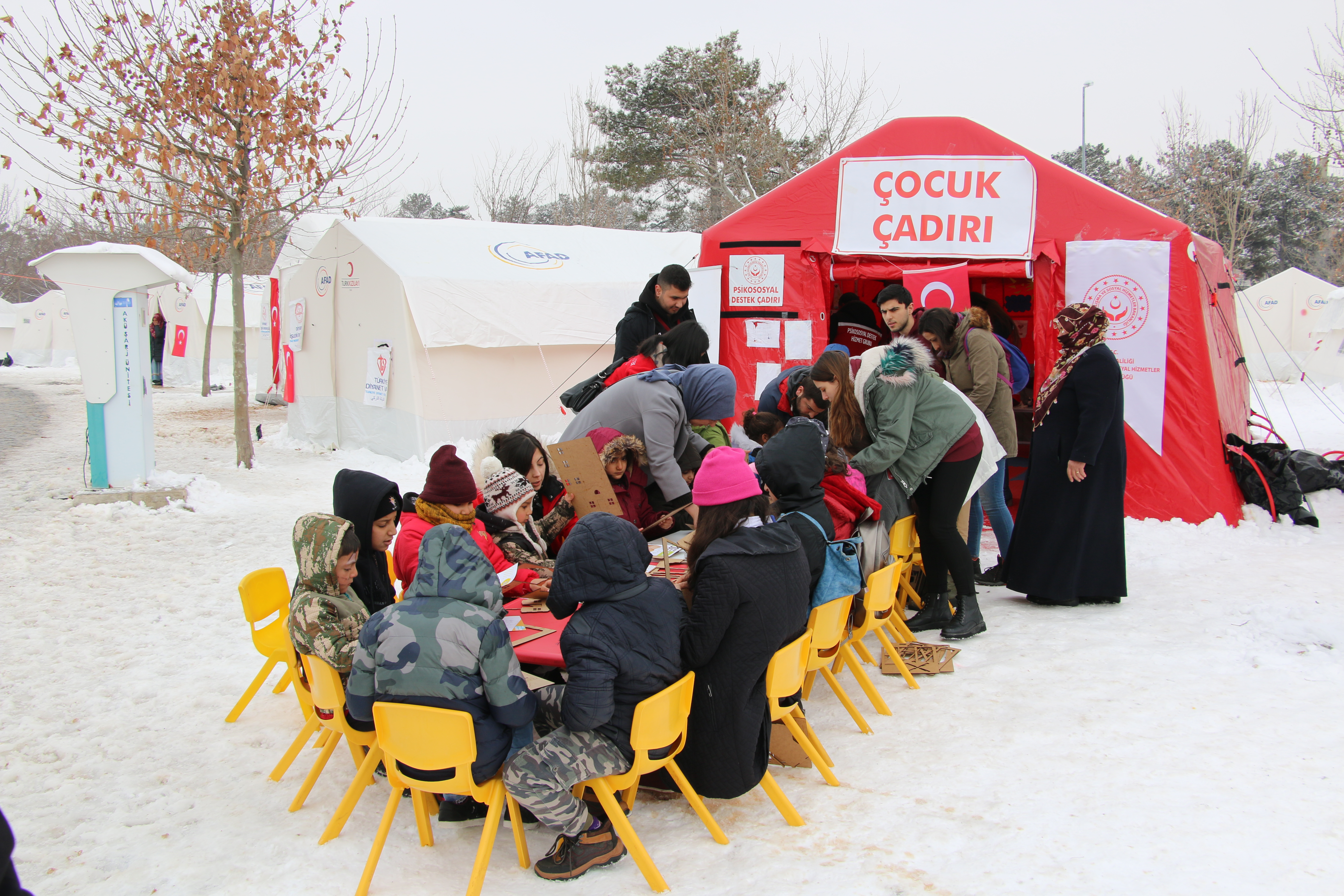 Volunteers from İstinye, who set out to support the earthquake victims, provide both psychological and moral support to children living in tents at Elazığ. Our volunteer students wanted to go to Elazığ immediately after the earthquake, but upon the calls of AFAD, we firstly provided support in relation to the materials that were required, and delivered 128 parcels of aid materials to those in need at Elazığ. After this support campaign, now our volunteer students and employees are at Elazığ.