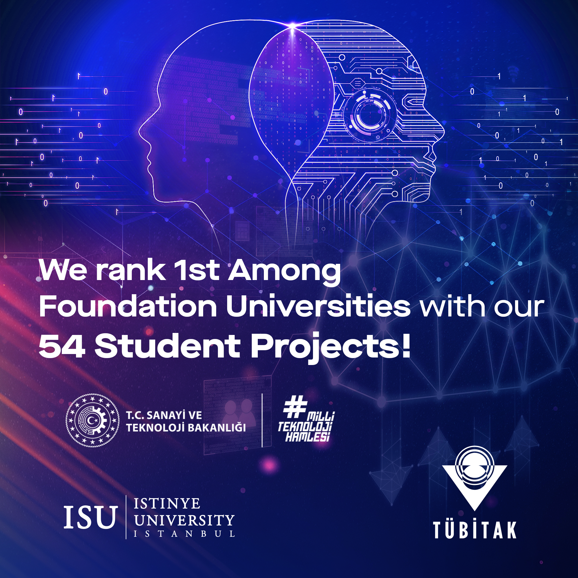 With the collaboration of the Istinye University students and advising faculty members, 54 out of 123 projects submitted within the scope of the 2209-A program have been evaluated as successful. According to the results of the 2209 programme for the 2nd term of the year 2023, among the 70 foundation universities that applied for the 2209-A "Research Projects Support Programme for Undergraduate Students" our university has ranked 1st.
