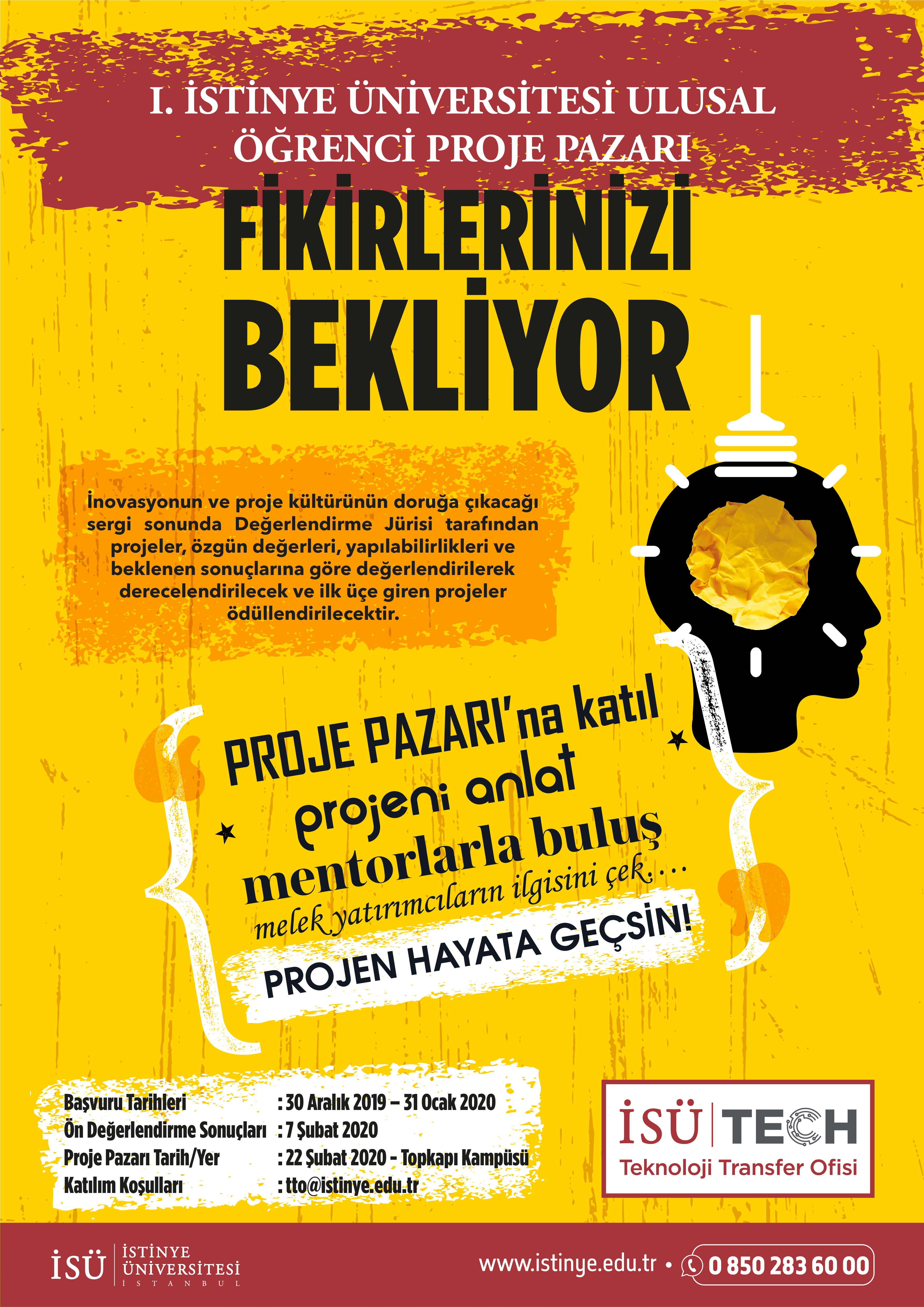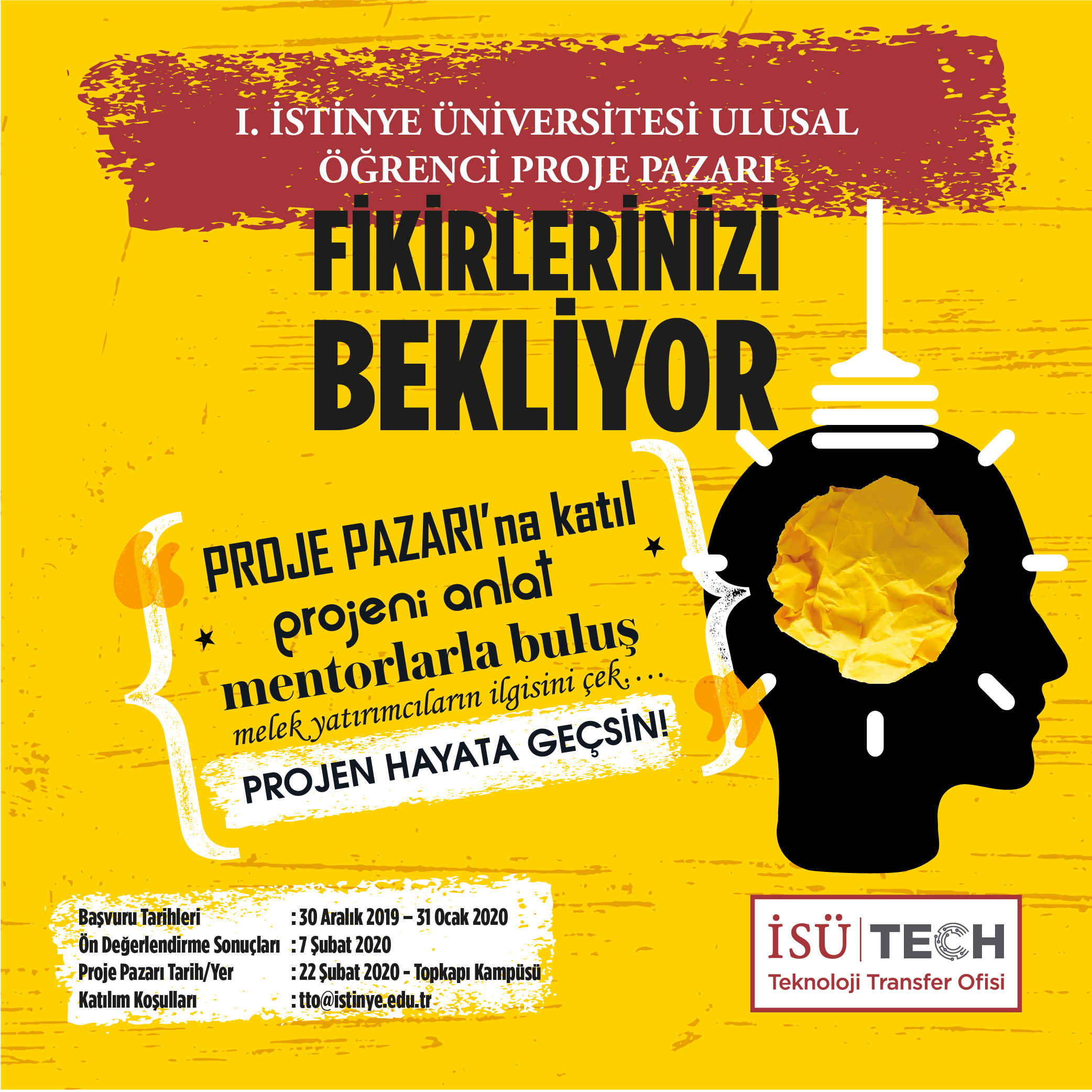 At Istinye University, it is our first priority to generate information in all the fields that are, or will be, necessary for our country and to provide optimal solutions. To this end, we are organizing the 1st ISTINYE UNIVERSITY NATIONAL STUDENT PROJECT MARKET contest so as to increase the knowledge and skills of our students, who come from all over Turkey to receive education in different disciplines, and to help them develop their own projects as part of our very priority. Students from all universities are welcomed to join this national contest organized by Istinye University’s Technology Transfer Office.