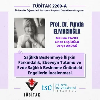 Beslenme ve Diyetetik Bölümümüz 4.sınıf öğrencilerimizin bölüm başkanımız sayın Prof. Dr. Funda Elmacıoğlu, Dr. Öğr. Üyesi Mutlu Tuçe Ülker, Dr. Öğr. Üyesi Elif Güner, Dr. Öğr. Üyesi Yeter Çelik, Arş. Gör. Bilge Tekin ve Arş. Gör. Elif Nur Özen danışmanlıklarında TÜBİTAK 2209-A Üniversite Öğrencileri Araştırma Projeleri Destekleme Programı kapsamında kabul alan projelerini gururla sunarız.