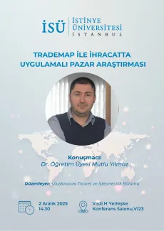 İstinye Üniversitesi, Uluslararası Ticaret ve İşletmecilik Bölümü tarafından 2 Aralık 2025 tarihinde Vadi H Yerleşke Konferans Salonu, V123'de gerçekleştirilecek “Trademap ile İhracatta Uygulamalı Pazar Araştırması” etkinliğine davetlisiniz.