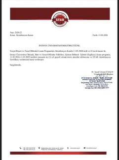 Our Business Administration (English) undergraduate program within the Faculty of Economics, Administrative and Social Sciences has been awarded the STAR Accreditation Certificate by the Accreditation Board for Undergraduate Programs in Social, Human and Basic Sciences, with decision number 22 dated 11.03.2026, for a period of three years, from 11.03.2026 to 11.03.2029.