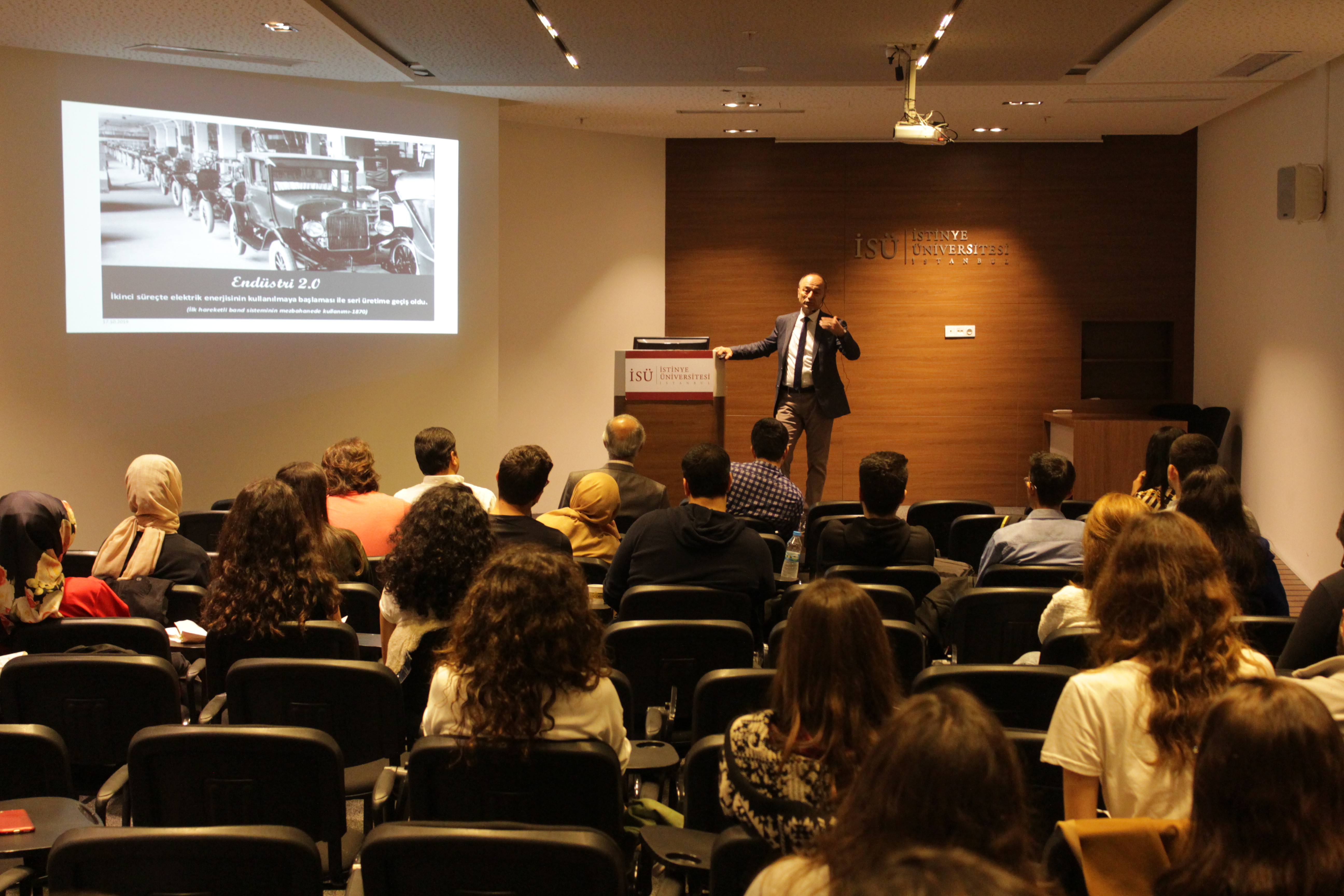 EPAM Müdürü Doç. Dr. Fahri Erenel konuşmasında “Yapay zekanın hayatımıza girmesiyle birlikte insan ve makinenin stratejik bir öngörüde bulunduğunda makinelerin daha doğru sonuçlar elde etmeye başladığını görmekteyiz.” sözlerinin ardından “Endüstri 4.0 ile birlikte ışıksız fabrikaların hayatımıza girecek” diyerek Stratejik Öngörüde bulunmayı çeşitli alanlarda ele aldı.