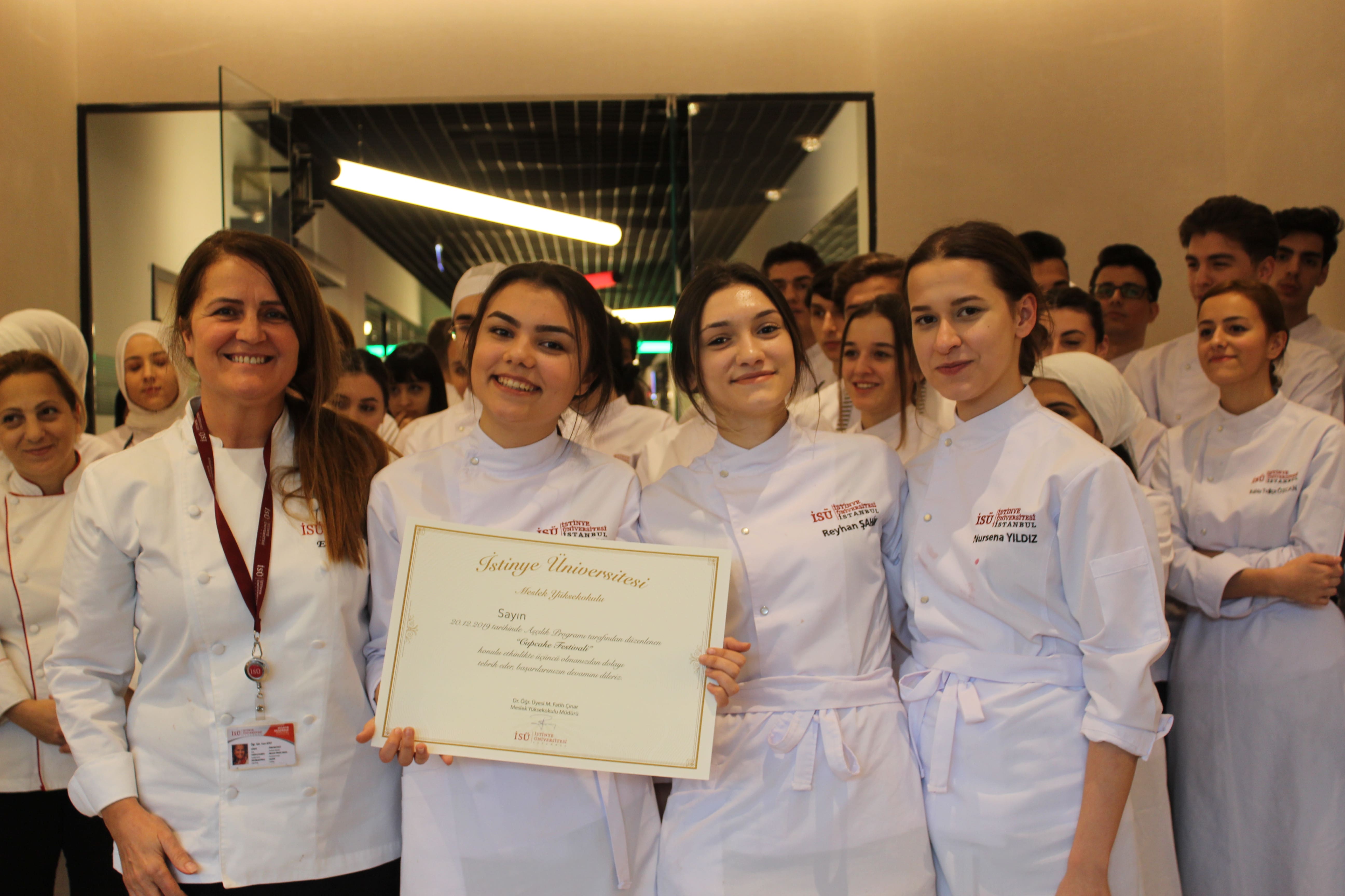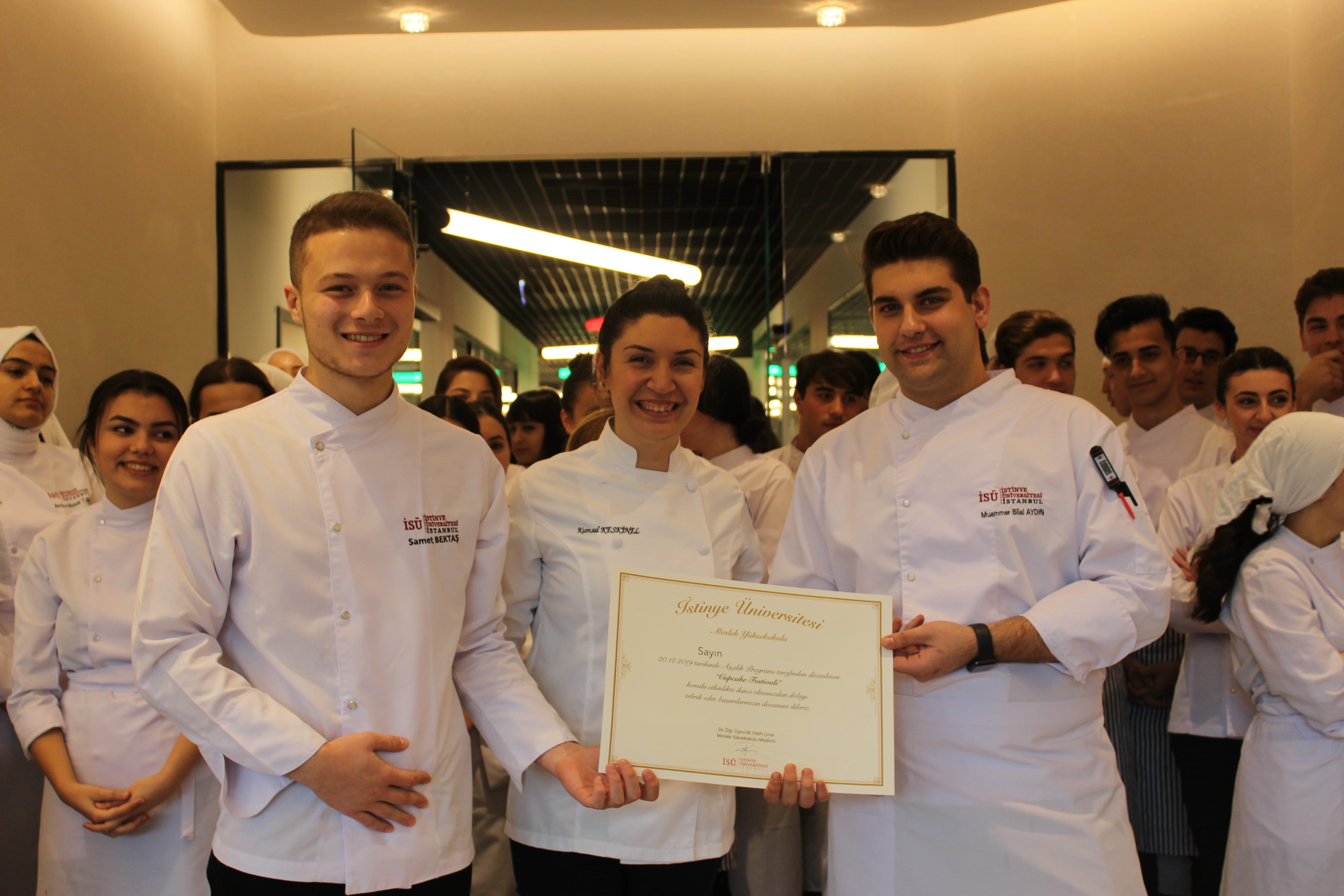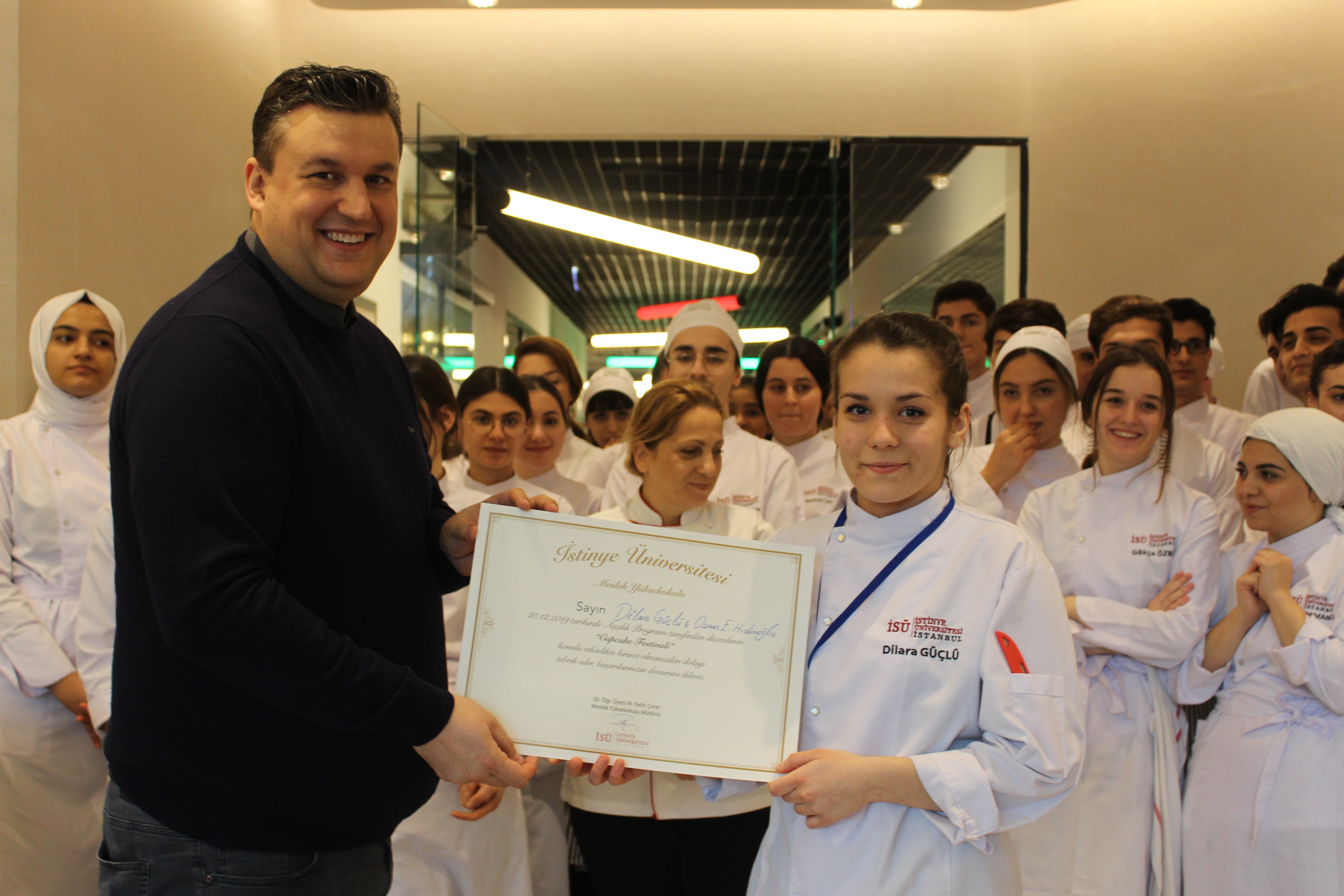 İstinye Üniversitesi Aşçılık Programı öğrencileri Cupcake Festivalinde birbirinden lezzetli cupcake’ler hazırladı. Sadece lezzetleri ile değil sunumları ile de yarışan cupcake’ler ziyaretçilere tam bir şölen yaşattı. Taze meyveli, yeni yıl konseptli, balkabaklı, unicorn konseptli gibi birbirinden ilginç çeşidin yarıştığı Cupcake Festivali’nin jüriliğini ise İtalyan Şef Claudio Chinali ve Şef Kumsal Keskinel yaptı.