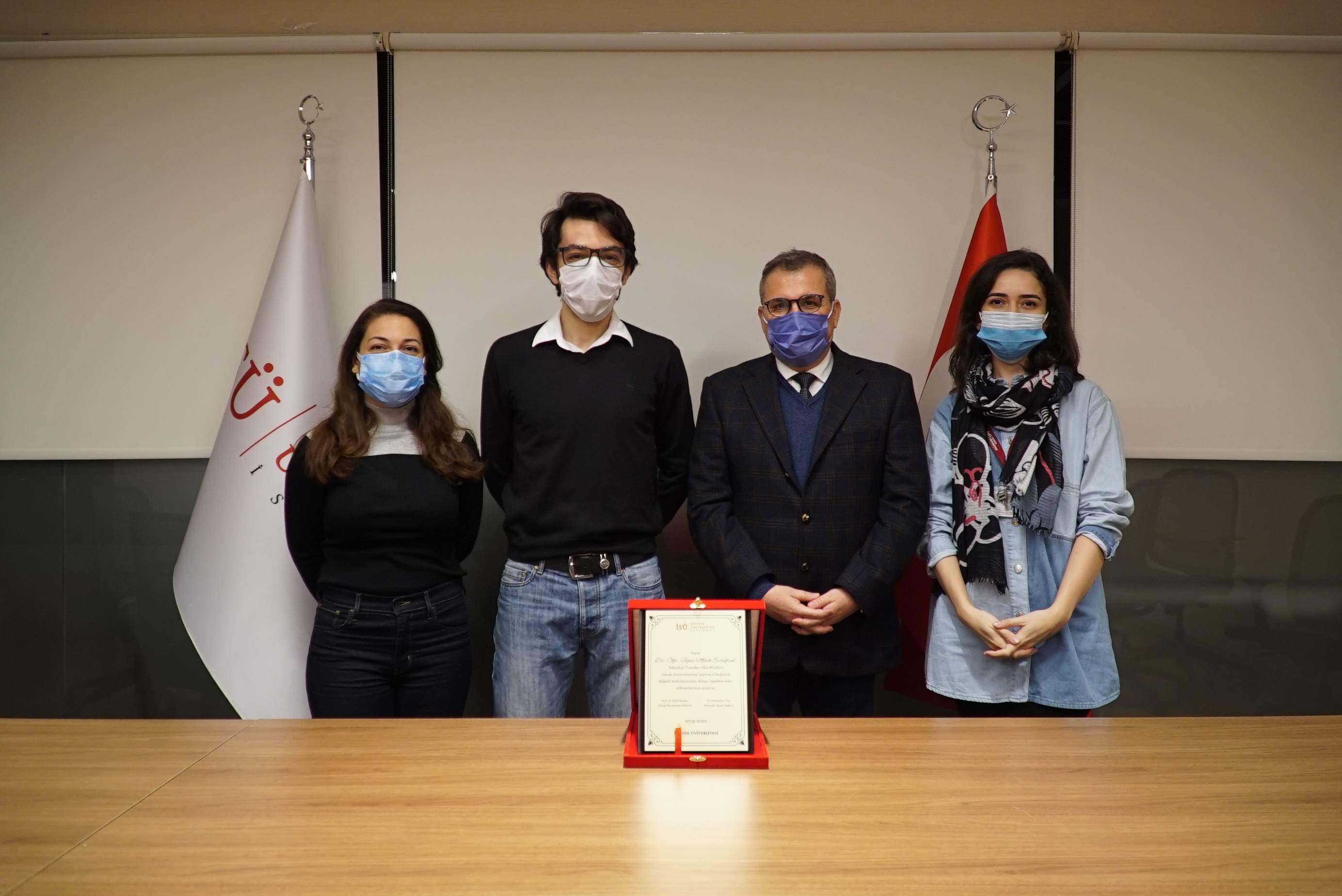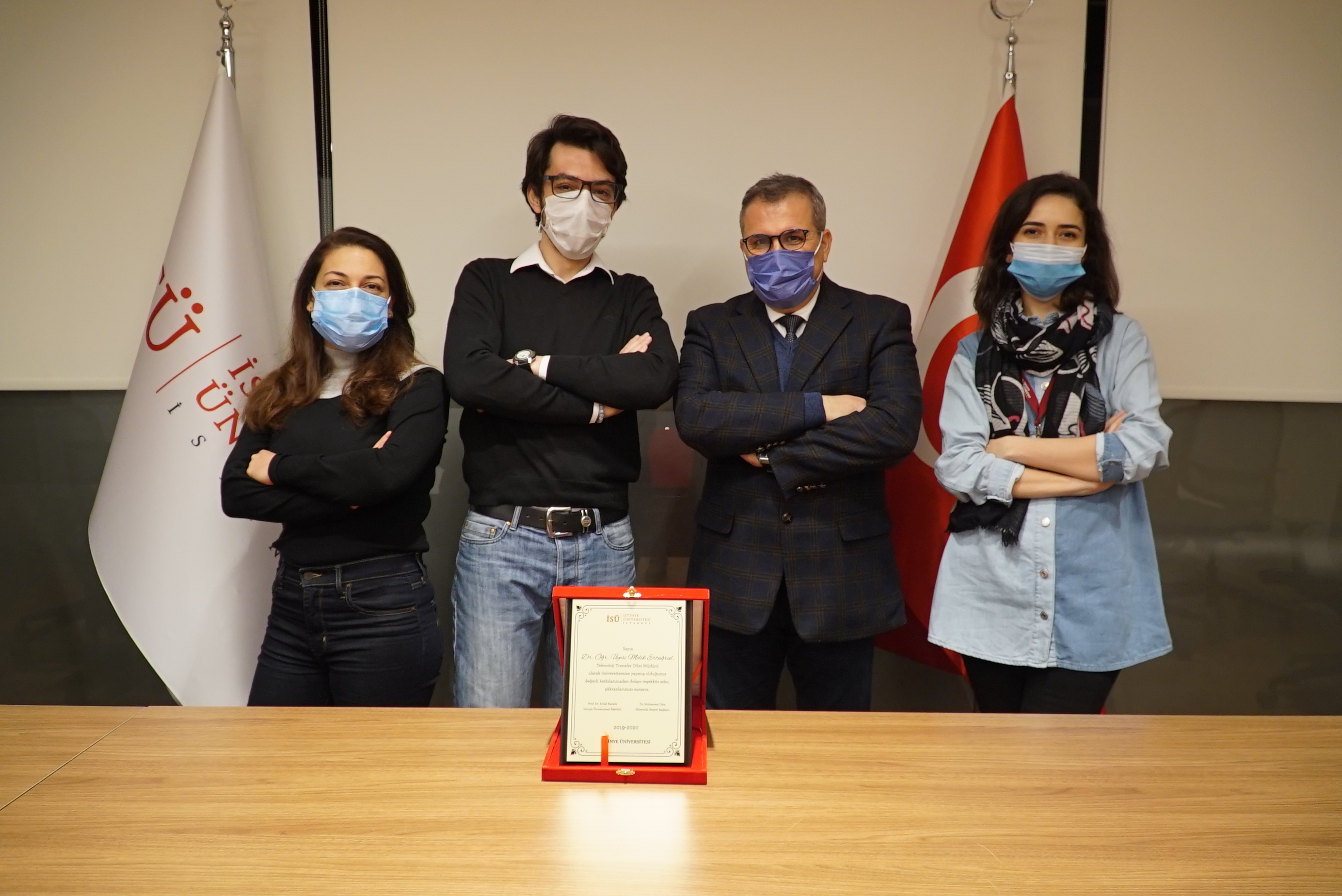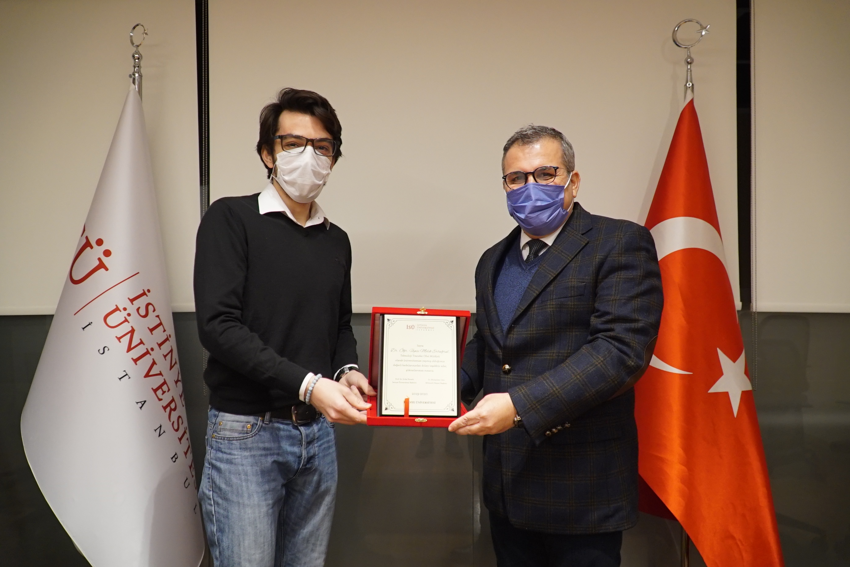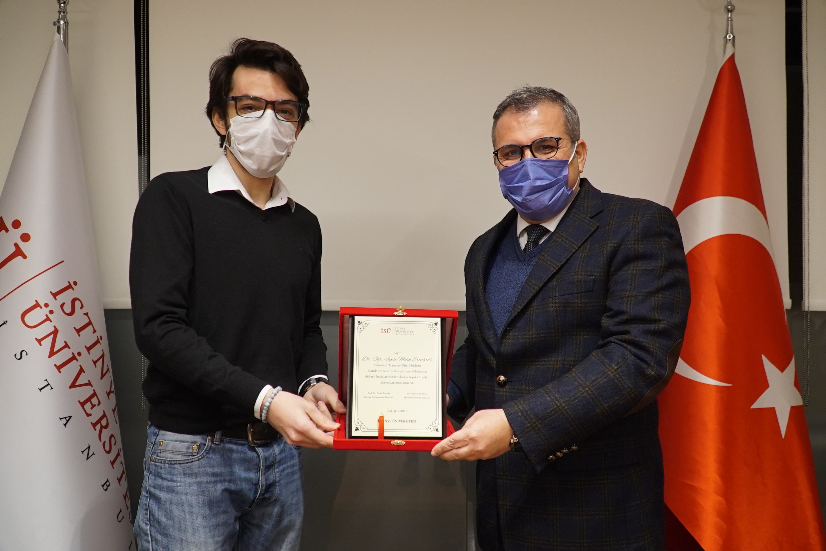 Teknoloji Transfer Ofisine vermiş olduğu emekler için İstinye Üniversitesi Rektörü Prof. Dr. Erdal Karaöz’ün elinden teşekkür plaketini alan Dr. Öğretim Üyesi Melik Ertuğrul, görevi devralacak olan İstinye Üniversitesi Sürekli Eğitim Merkezi Müdürü Ceylan Adıgüzel’e başarılar diledi.