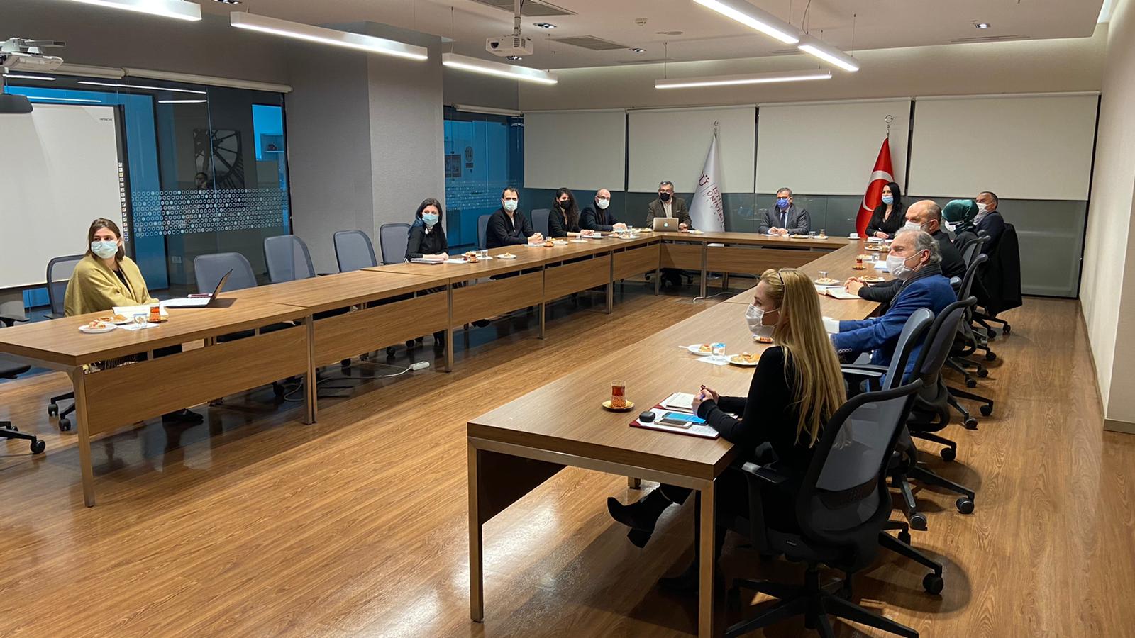 Rektörümüz Prof. Dr. Erdal Karaöz, AR-GE’den Sorumlu Rektör Yardımcımız Prof. Dr. Engin Ulukaya, Eğitim-Öğretimden Sorumlu Rektör Yardımcımız Prof. Dr. Peyami Çelikcan, Sektörle İş Birliği Ofisi Koordinatörümüz Şule Kılıçarslan ve akademisyenlerimizin yer aldığı toplantıya, Eyüpsultan Belediye Başkanı Deniz Köken’in danışmanı Şevket Elmütevelli, Eyüpsultan Belediyesi Gençlik ve Spor Hizmetleri Müdürü Mehmet Irmak, Sosyal Destek Hizmetleri Müdürü Zekeriya Selamet ve Kadın ve Aile Hizmetleri Müdürü Ayşe Tural katılım gösterdi.