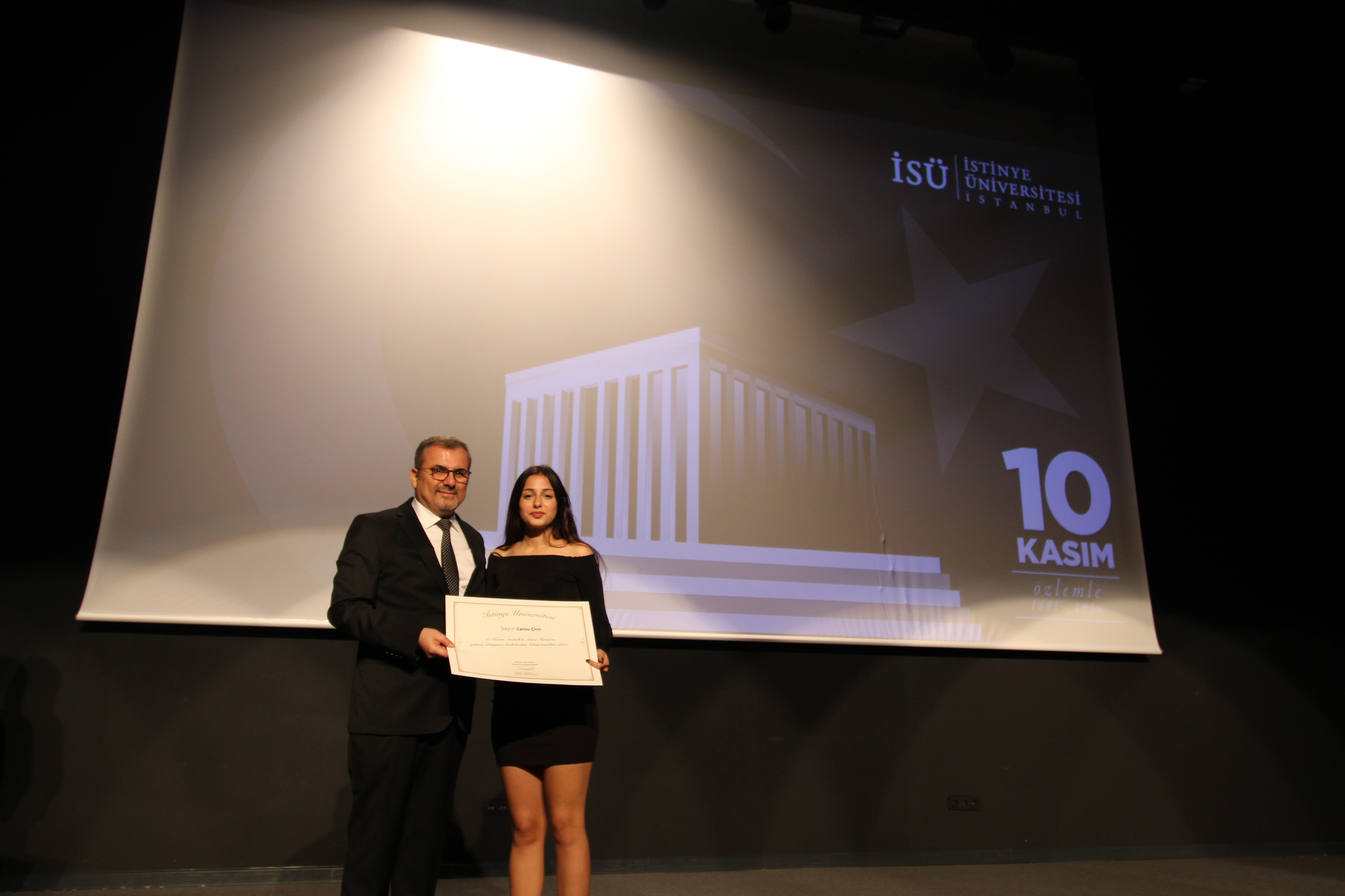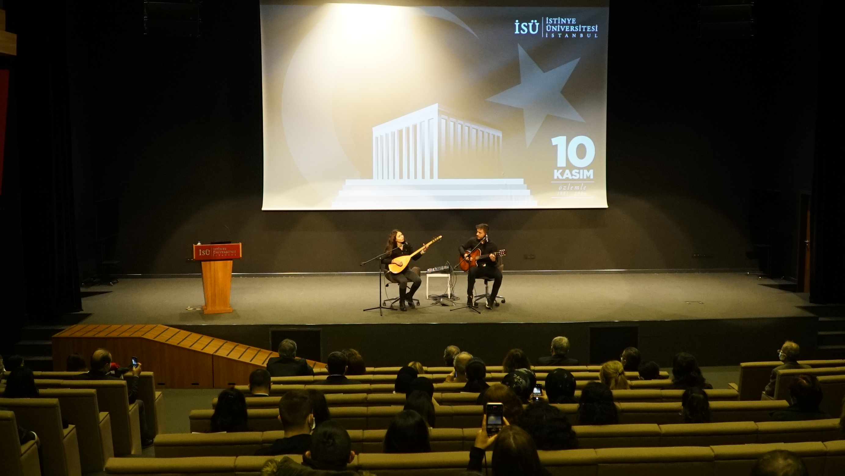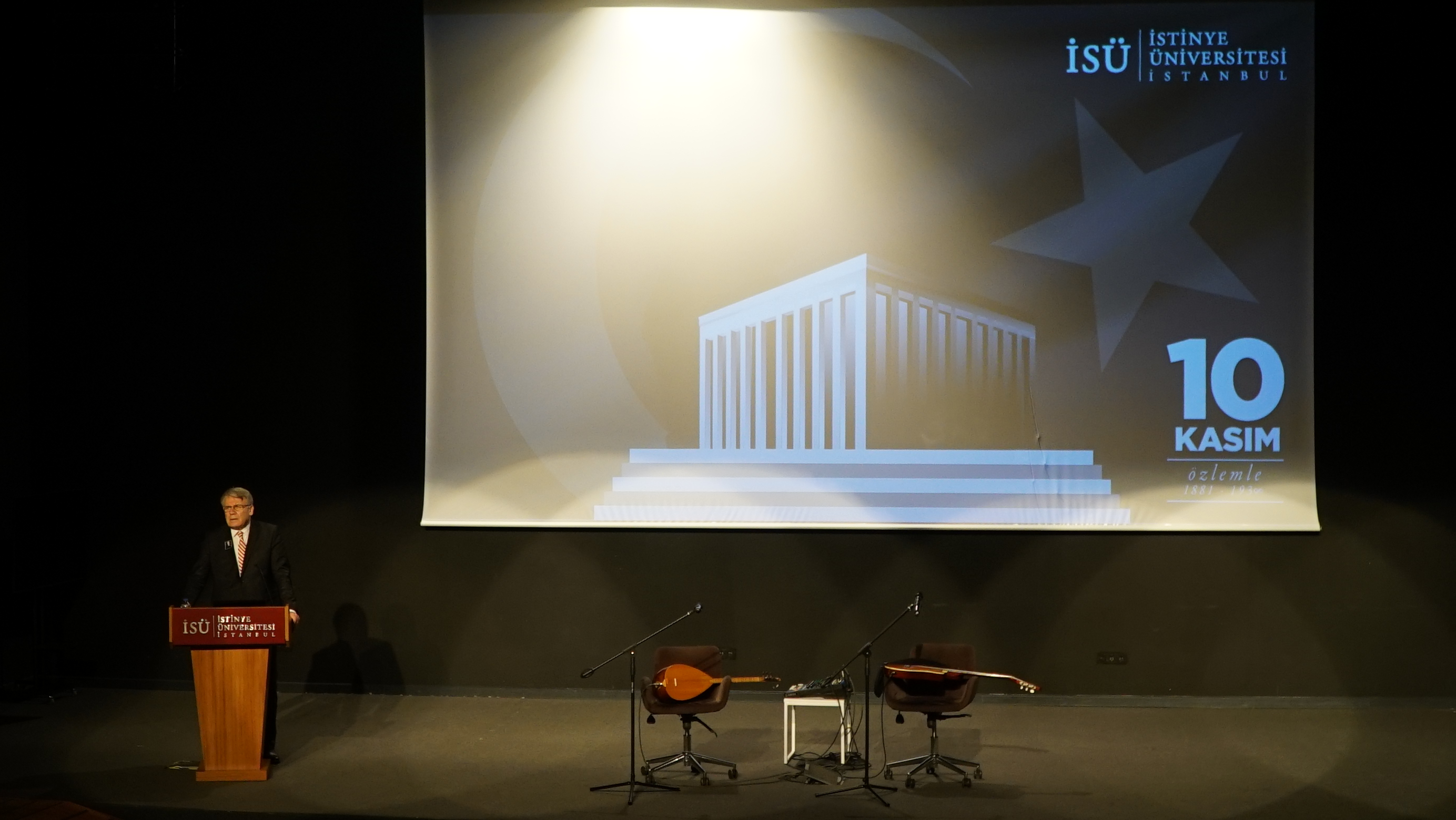 Mustafa Kemal Atatürk’ün sevdigi şarkılarla başlayan tören, İstinye Üniversitesi öğrencileri Selin Öksüz'ün "Atatürk ve Kitaplar", Sude Sevinçli'nin "Atatürk'ten Anılar ve Anekdotlar" ve Atatürkçü Düşünce Kulübü Başkanı Cansu Çirçi'nin ''Günün Anlam ve Önemi'' konulu konuşmalarıyla devam etti.