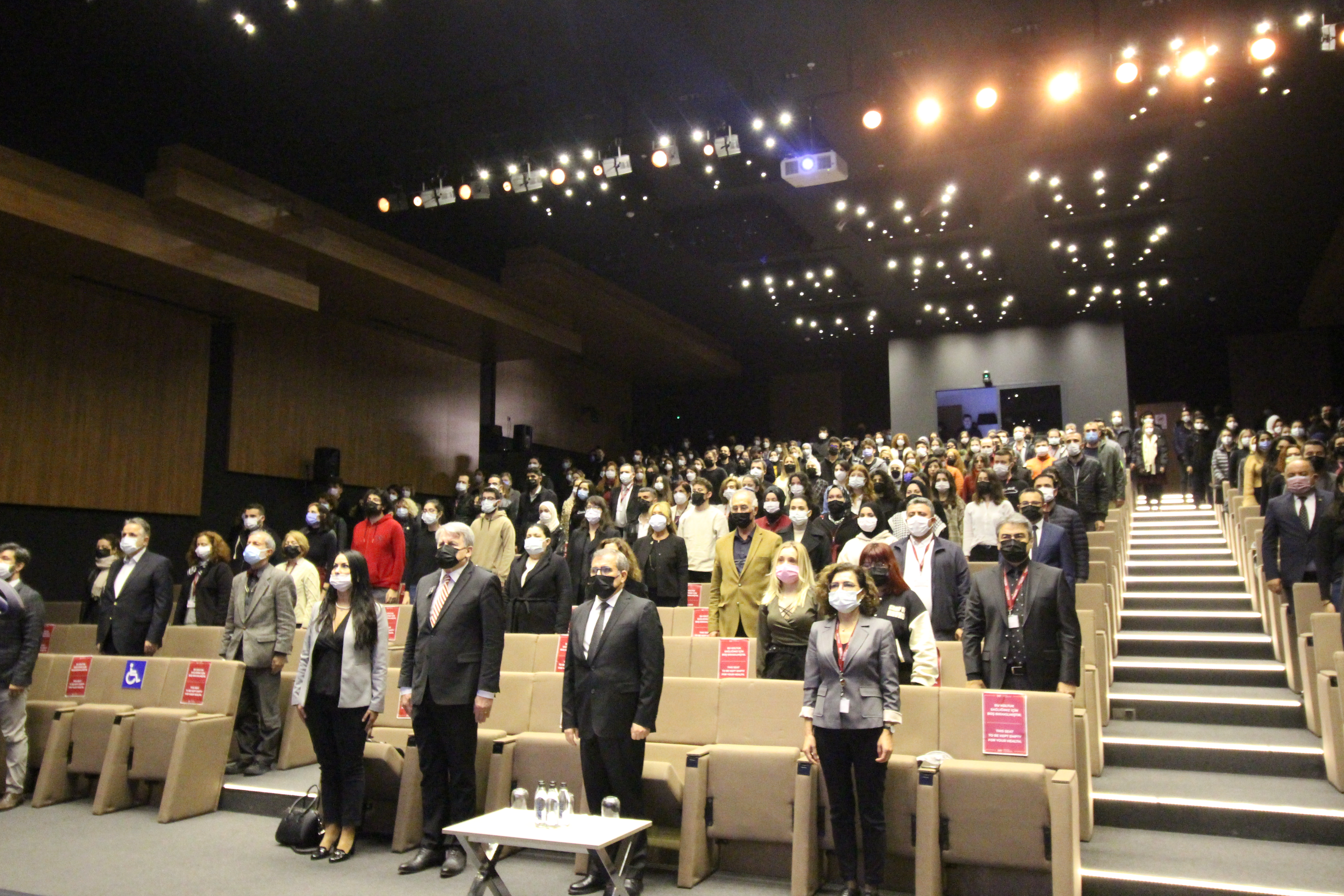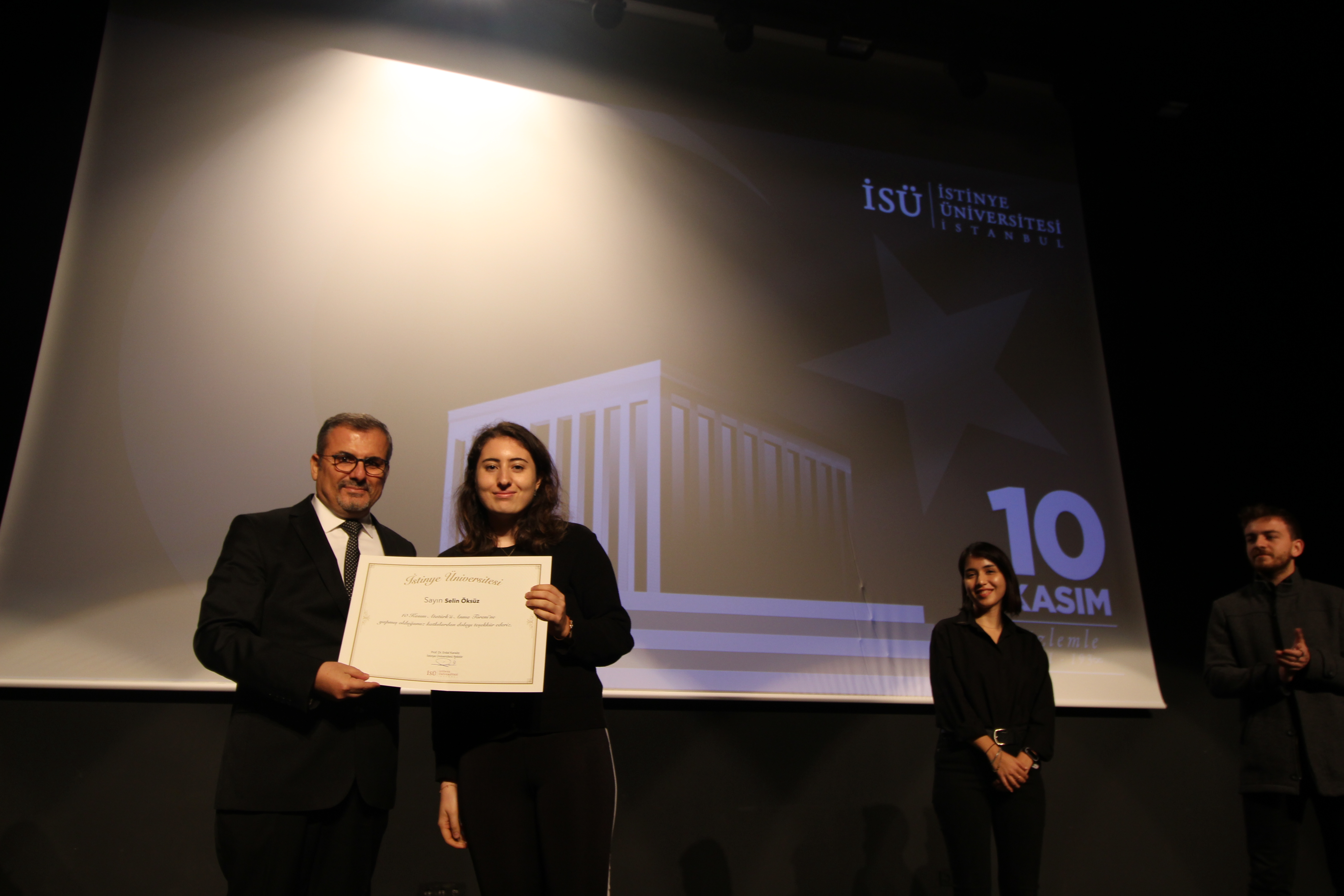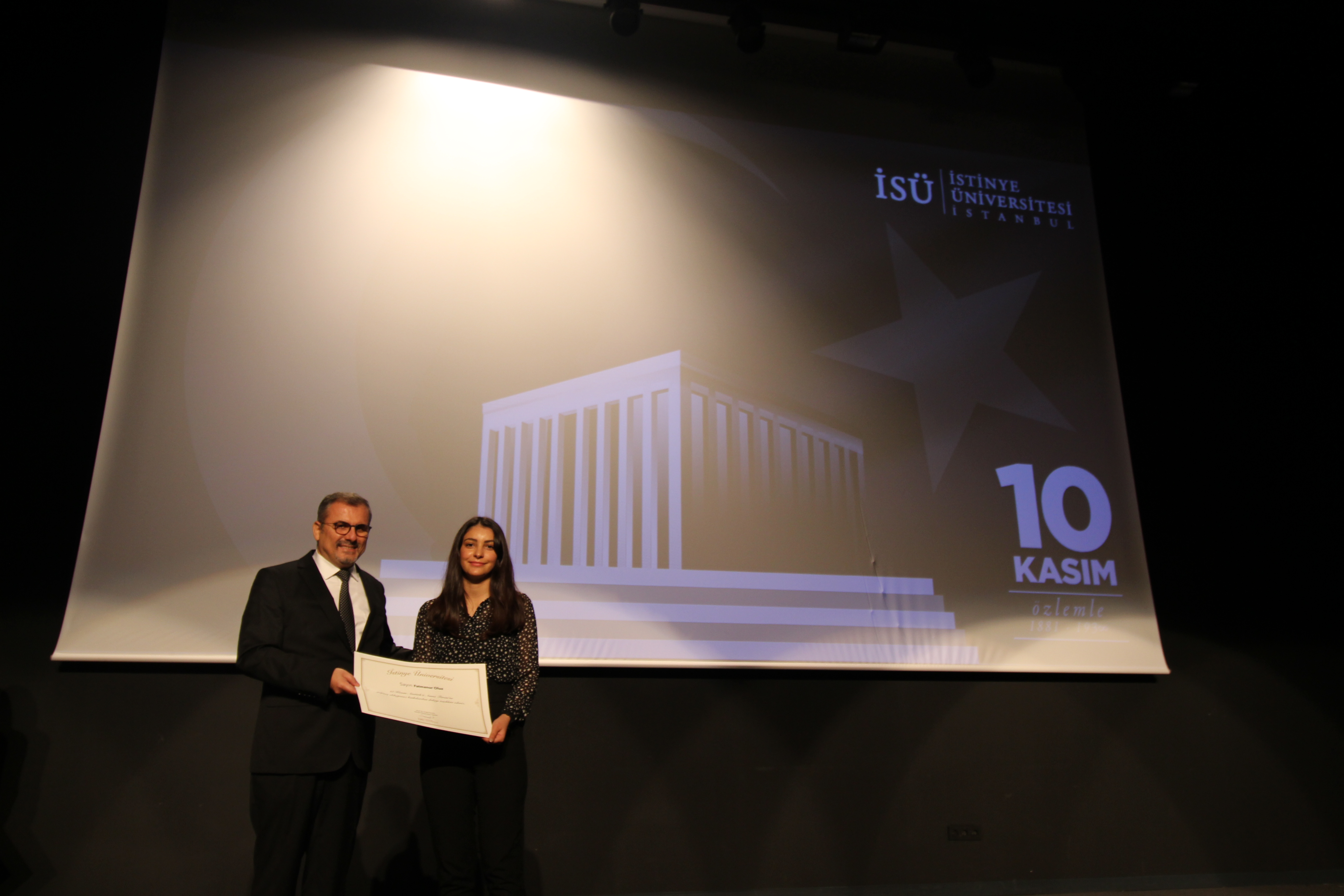 Mustafa Kemal Atatürk’ün sevdigi şarkılarla başlayan tören, İstinye Üniversitesi öğrencileri Selin Öksüz'ün "Atatürk ve Kitaplar", Sude Sevinçli'nin "Atatürk'ten Anılar ve Anekdotlar" ve Atatürkçü Düşünce Kulübü Başkanı Cansu Çirçi'nin ''Günün Anlam ve Önemi'' konulu konuşmalarıyla devam etti.