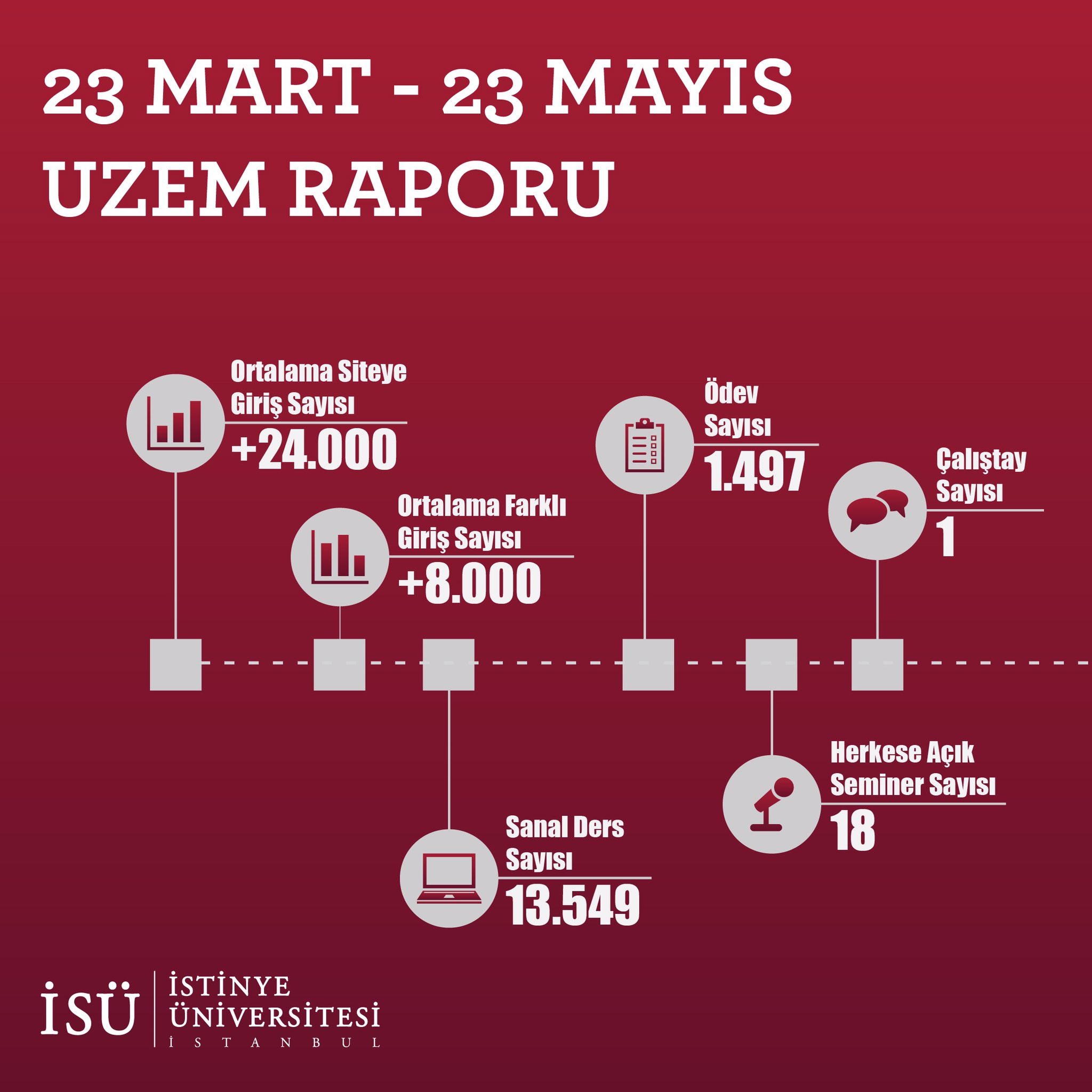 Uzaktan Eğitim sistemine hızla uyum sağlayan 8000’in üzerinde öğrencimizin katılımıyla tamamladığımız süreçte, akademisyenlerimiz tarafından üretilen 23.239 içeriğe toplamda 1.546.933 erişim sağlanırken, istinyelilerin evde kaldığı süreçte sağlık, bilim, sanat ve spor üzerine 18 seminer gerçekleşti.