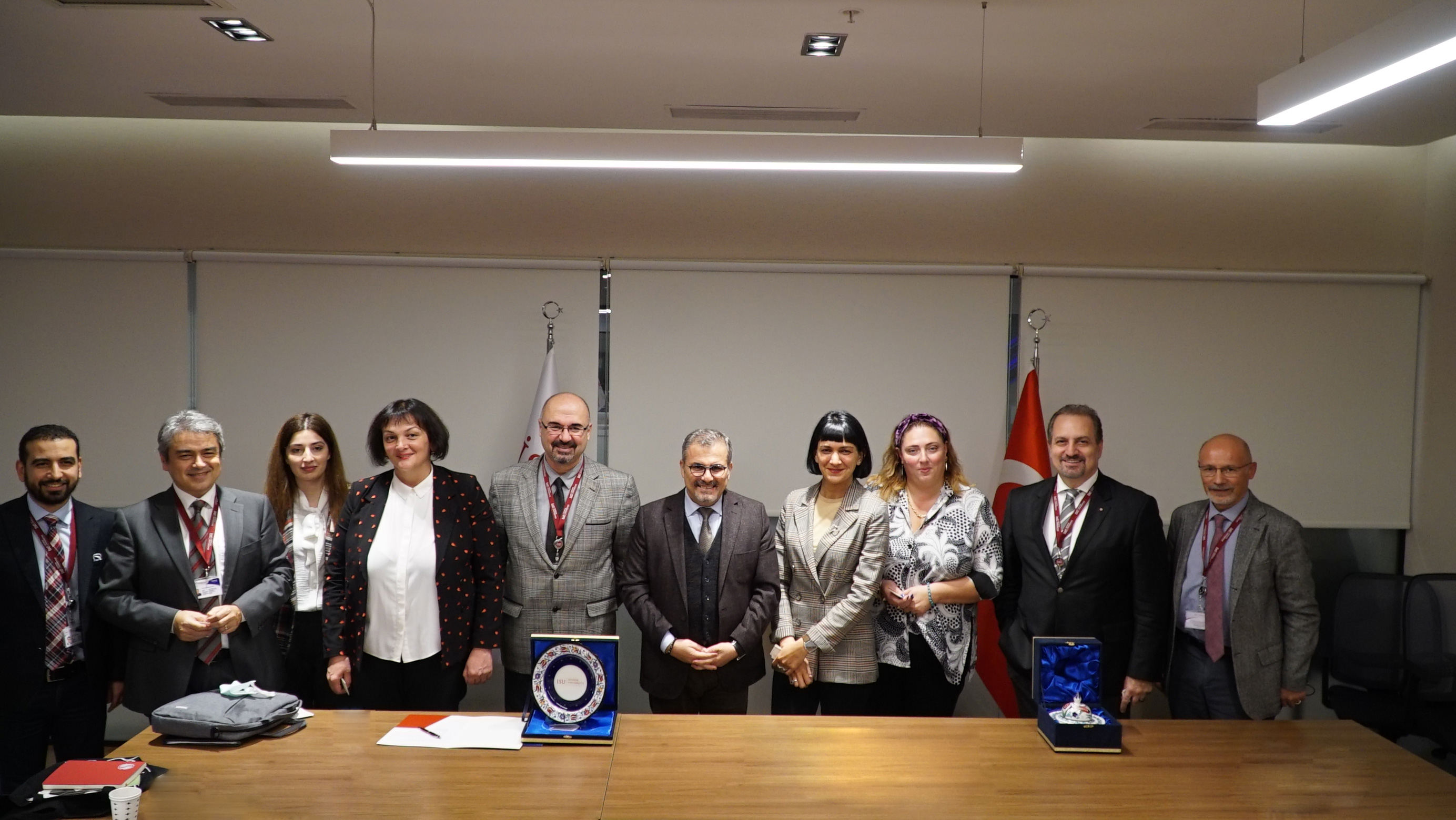 Gürcistan Üniversitesi Heyeti, 15 Kasım 2021 Pazartesi günü gerçekleşen iş birliği ziyaretinde İstinye Üniversitesi Rektörü Prof. Dr. Erdal Karaöz, ARGE’den Sorumlu Rektör Yardımcısı Prof. Dr. Engin Ulukaya, Tıp Fakültesi Dekanı Prof. Dr. Mustafa Ayberk Kurt, Sağlık Bilimleri Fakültesi Dekanı Prof. Dr. İsmet Tamer ve Diş Hekimliği Fakültesi Dekanı Prof. Dr. Tamer Ataoğlu ile İstinye Üniversitesi Topkapı Kampüste bir araya geldi.