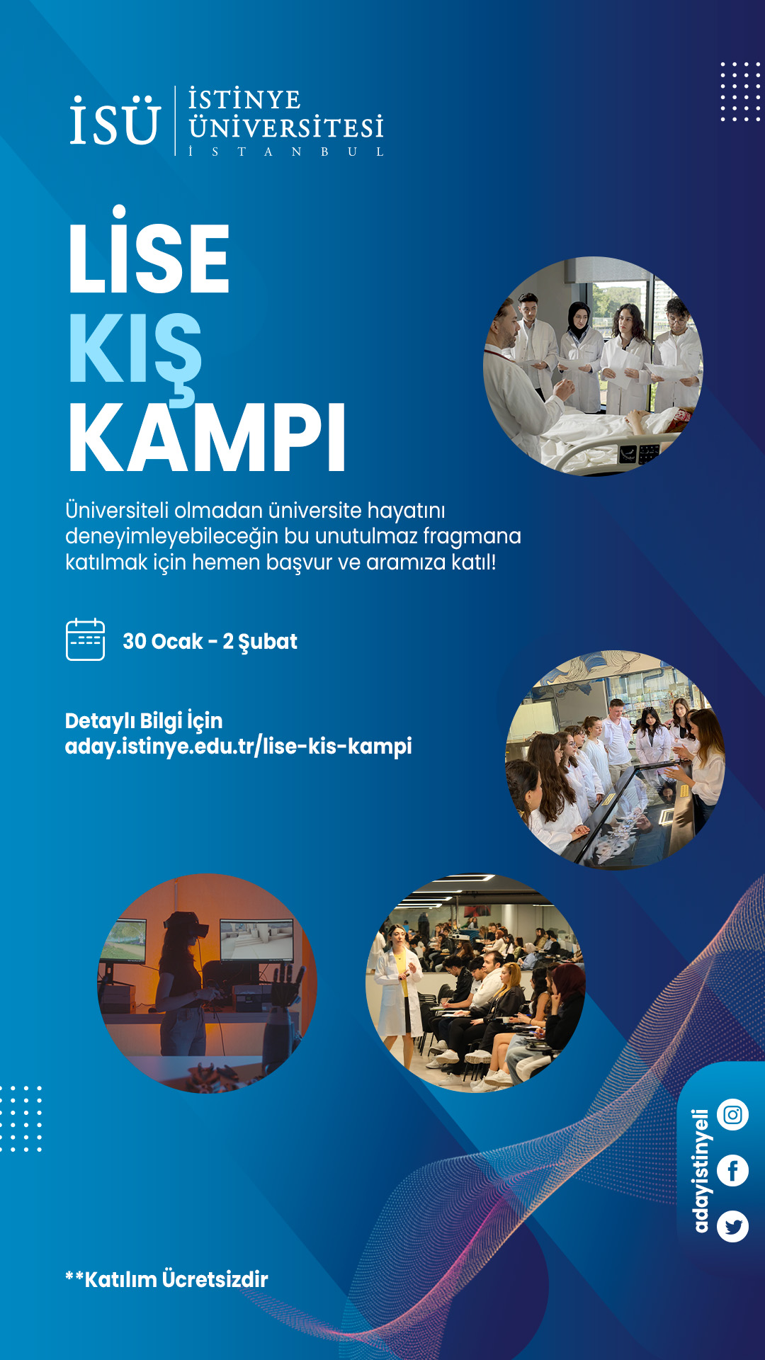 Henüz lise bitmemişken üniversite hayatına dair deneyimler biriktirmek, bilgiler keşfetmek için harika bir ön izlemeye davetlisiniz. Sizin için özel olarak hazırladığımız #istinyeli uygulamalı eğitimleriyle, daha üniversiteli olmadan üniversite yaşamını deneyimlemeye var mısınız? İlginizi çekebilecek tüm alanlardan dersler alabilir, uygulamalı eğitim ve eğlenceli atölyelerle üniversite yaşamında sizi nelerin beklediğini şimdiden görebilirsiniz. Tek yapmanız gereken başvuru formunu eksiksiz doldurmak ve bizi takip etmek.