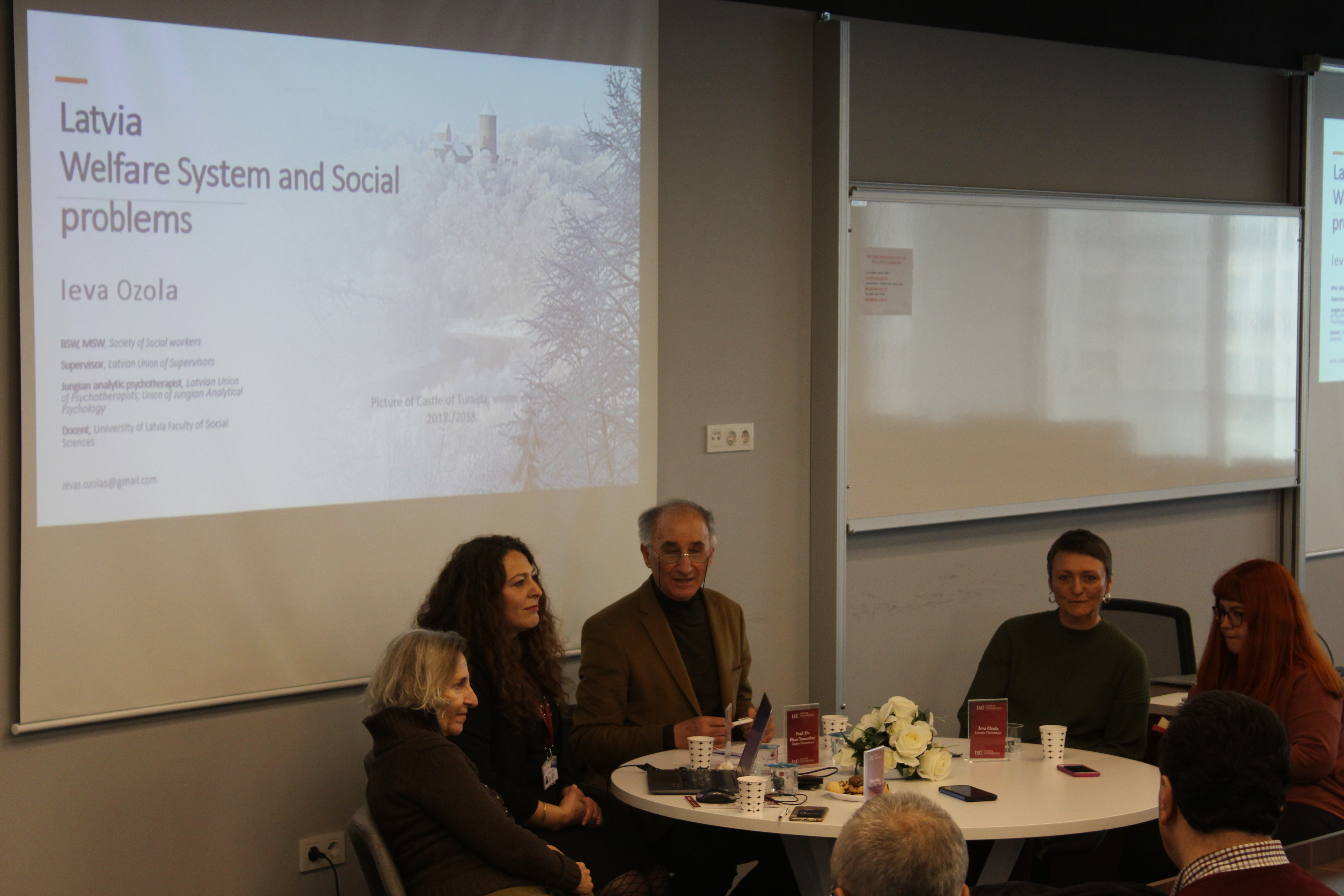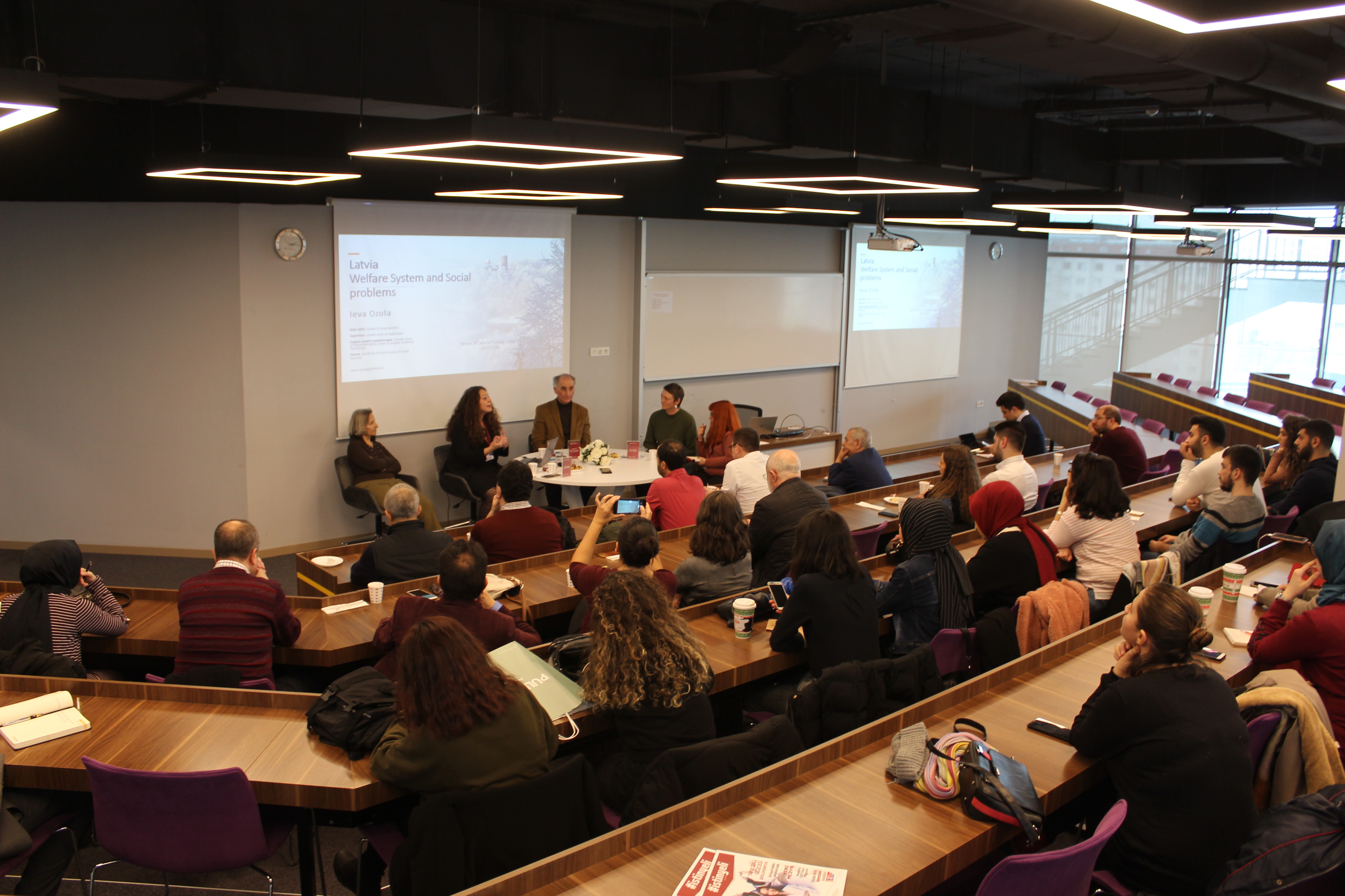 Prof. İlhan Tomanbay, the head of the Department of Social Services, moderated the roundtable meeting on “Social Problems and Social Work from the perspective of Social Welfare in Latvia and Turkey”, organized by the Department of Social Services of the Faculty of Health Sciences. Leva Ozola, Lecturer at Latvia University, Dr. Gülcü Urhan, Lecturer, and Nuket Atalay, Honorary President of CIF Turkey and the YÖRET Foundation, delivered a speech at the meeting.