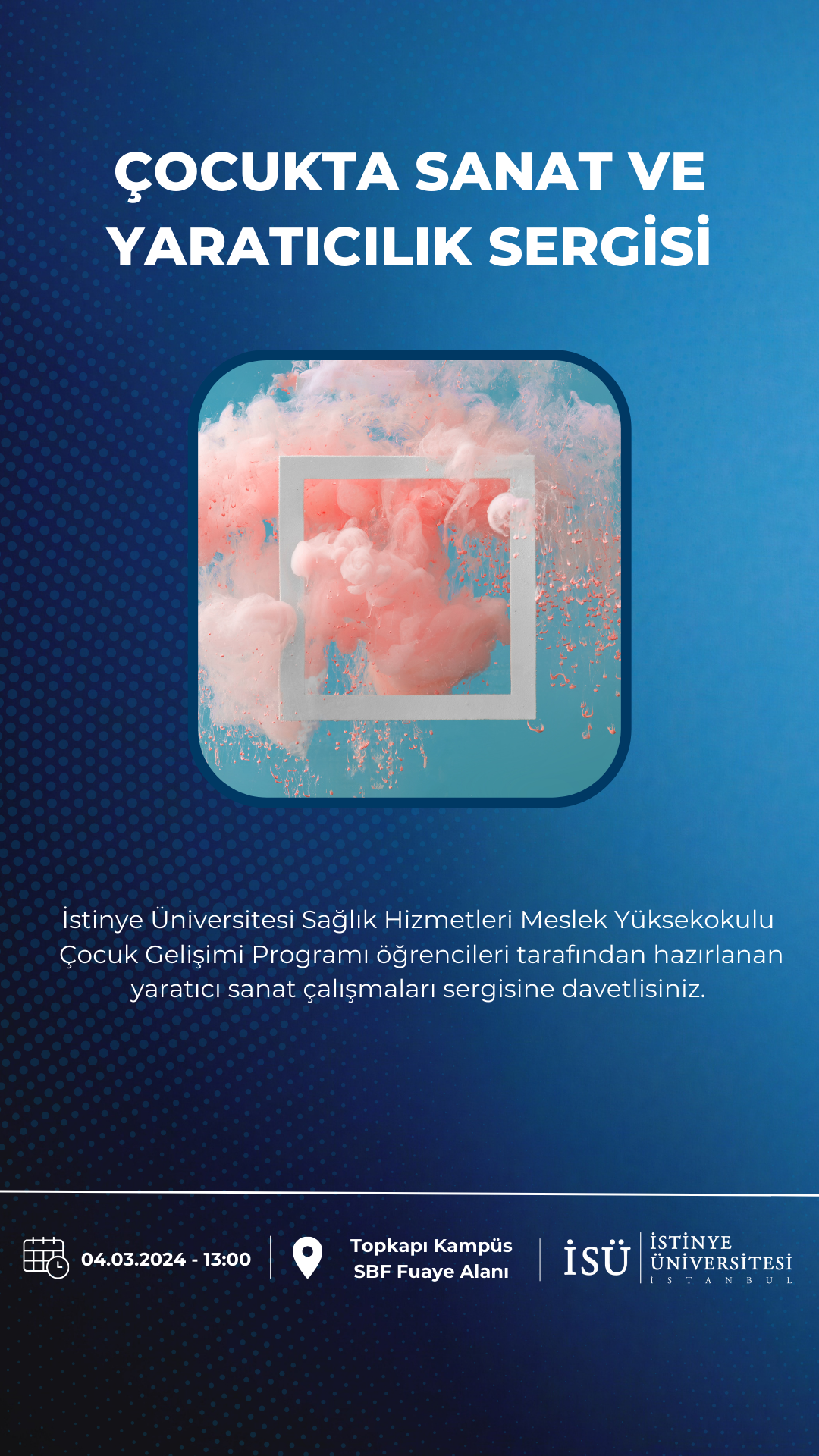 You are invited to the exhibition of creative art works, which will be opened by the students of Istinye University, Vocational School of Health Services Child Development Program, on Monday, March 4, 2024 at 13:00.