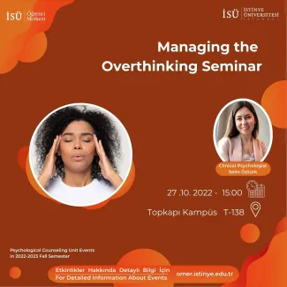What is overthinking? What are the causes of overthinking? How can you manage your thinking over and over? Everybody is welcome to join our seminar to find answers to these questions.