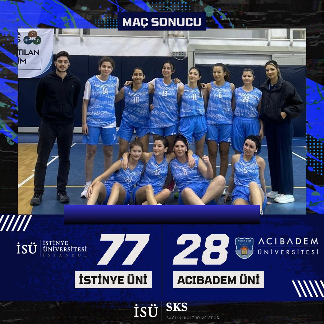 Our University’s Women’s Basketball Team delivered an outstanding performance in their match against Acıbadem University, securing a decisive 77–28 victory. Maintaining control of the game from start to finish, our team outperformed their opponent with disciplined gameplay and a high level of determination.