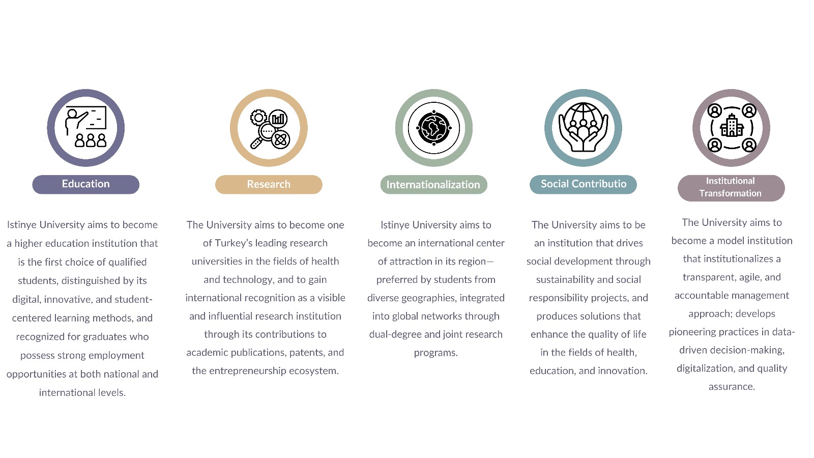 Furthermore, the plan is strongly aligned with the “2030 Roadmap for Turkish Higher Education” announced by the Council of Higher Education (YÖK). It presents a framework consistent with YÖK’s priorities in areas such as quality-oriented process management, digital transformation, internationalization, and innovation. In this way, Istinye University’s institutional goals progress in harmony with the national higher education vision.
