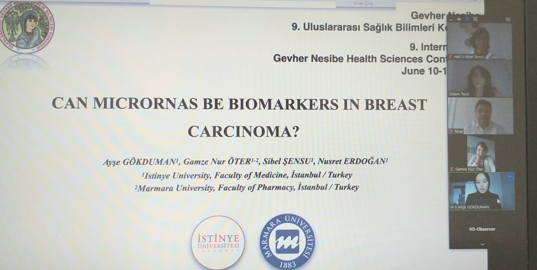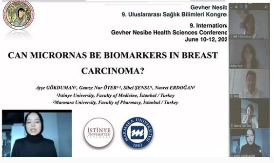 Ayşe GÖKDUMAN, a Term III student of our Faculty of Medicine, on 11.06.2022; Under the guidance of our Medical Pathology Department, "9. He successfully made his oral presentation entitled "CAN MICRORNAS BE BIOMARKERS IN BREAST CARCINOMA?" at the INTERNATIONAL GEVHER NESİBE HEALTH SCIENCES CONFERENCE " event.