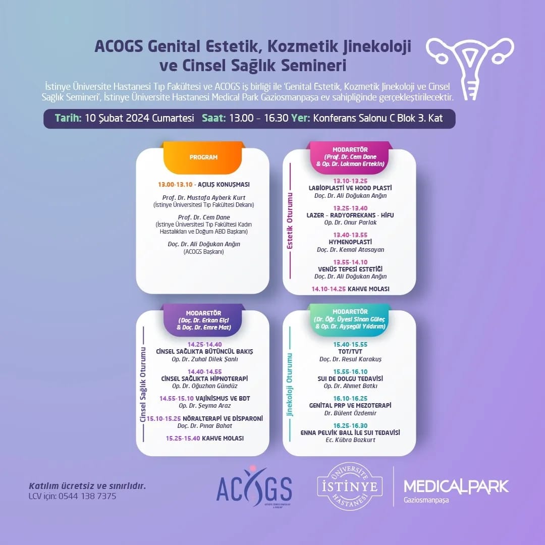 The academic meeting titled "Genital Aesthetics, Cosmetic Gynecology and Sexual Health", organized by the Department of Gynecology and Obstetrics at Istinye University Gaziosmanpaşa Hospital, was held with the participation of nearly 140 of our colleagues. We congratulate the department head Prof. Dr. Cem Dane, and all our faculty members who contributed to the event ...