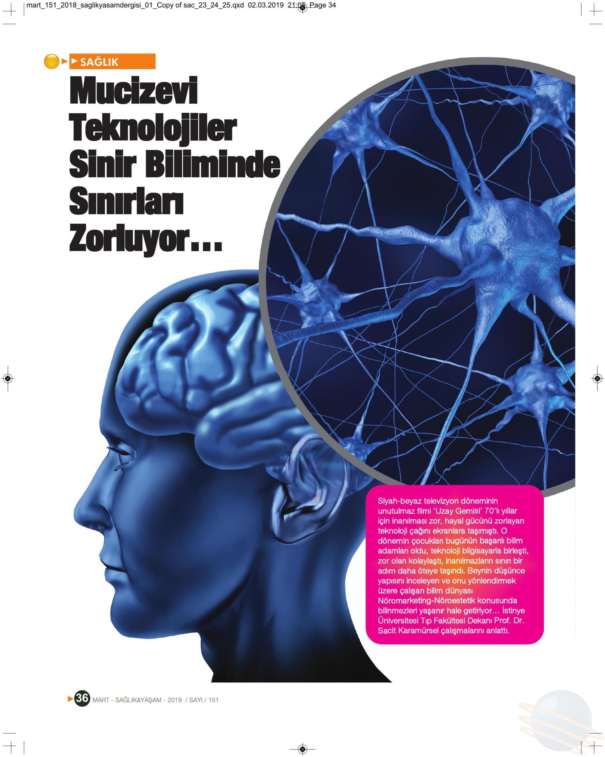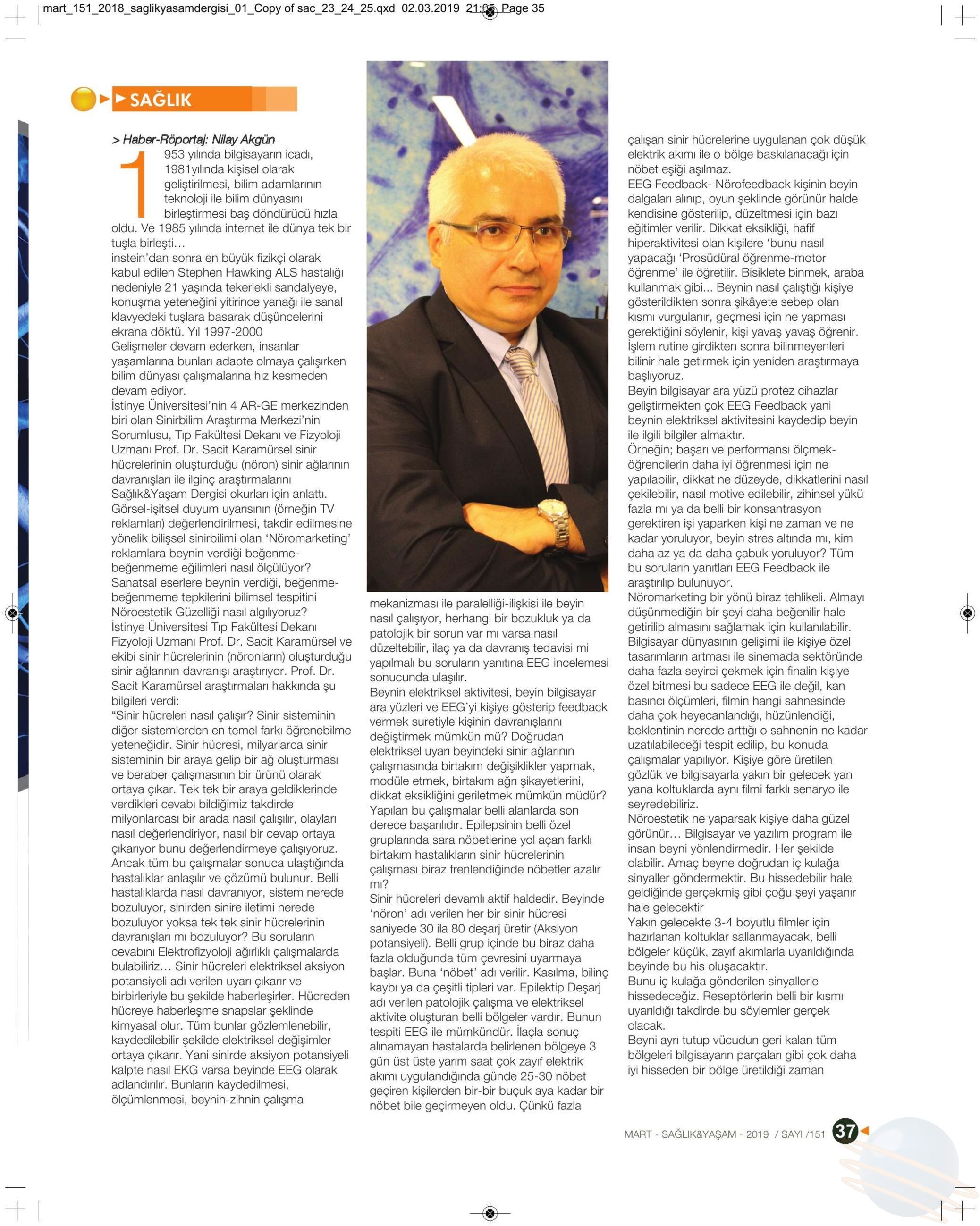 The article written by Prof. Sacit Karamürsel, the Dean of İstinye University Faculty of Medicine, is published in magazine Health and Life. In his article called “Miraculous Technologies Push the Boundaries of Neuroscience”, Professor evaluated neuro-marketing and neuro-esthetic studies.