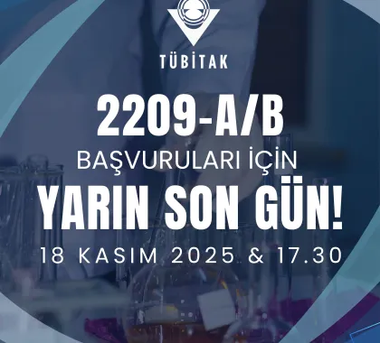 TÜBİTAK 2209-A Üniversite Öğrencileri Araştırma Projeleri ve 2209-B Sanayiye Yönelik Araştırma Projeleri destek programlarına başvurular yarın sona eriyor!
