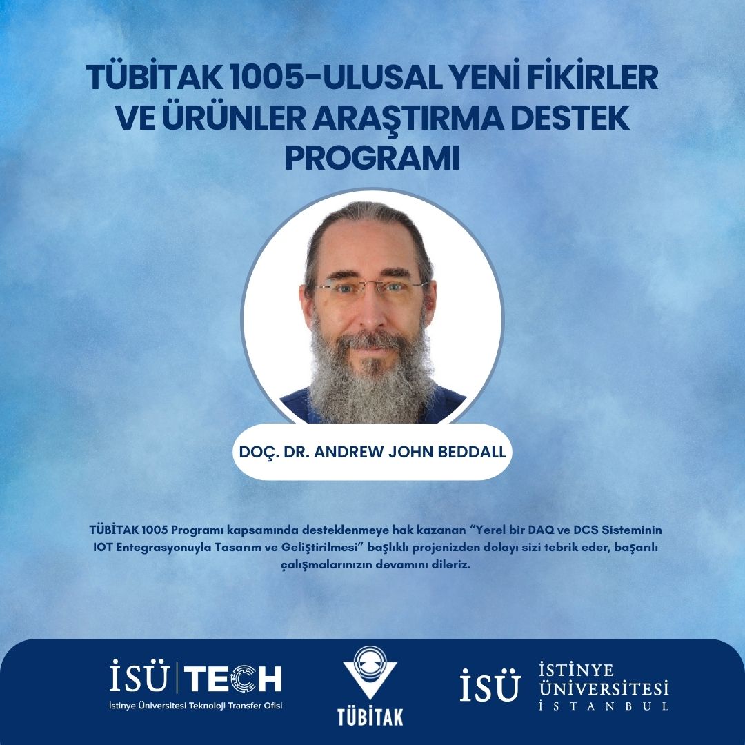 Üniversitemiz öğretim üyesi Doç. Dr. Andrew John Beddall, TÜBİTAK’ın 1005 - Ulusal Yeni Fikirler ve Ürünler Araştırma Destek Programı kapsamında destek almaya hak kazanan projesiyle, ülkemizin bilim ve teknoloji alanındaki ilerleyişine yenilikçi katkılar sunacak.