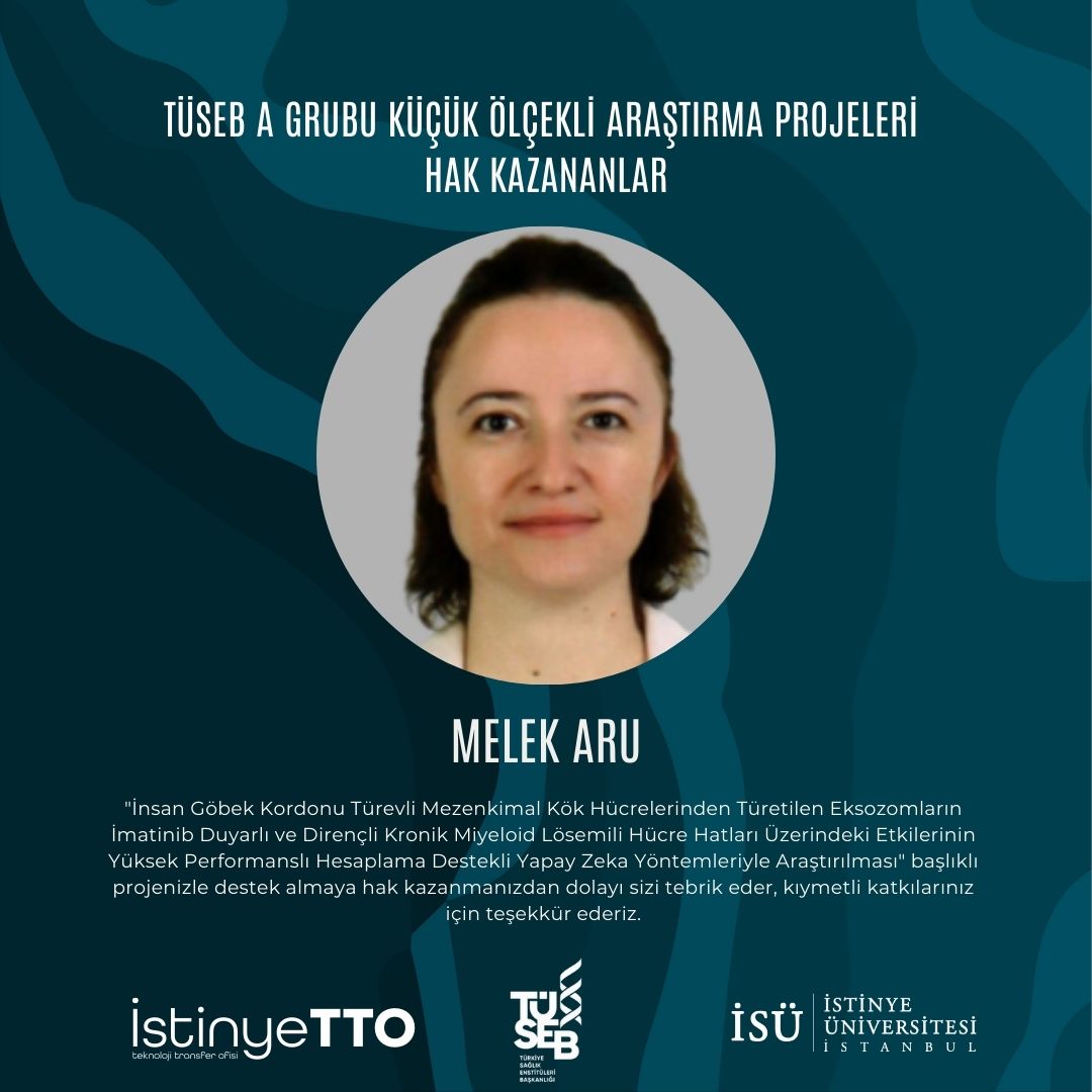 🔹 Melek Aru – “İnsan Göbek Kordonu Türevli Mezenkimal Kök Hücrelerinden Türetilen Eksozomların İmatinib Duyarlı ve Dirençli Kronik Miyeloid Lösemili Hücre Hatları Üzerindeki Etkilerinin Yüksek Performanslı Hesaplama Destekli Yapay Zeka Yöntemleriyle Araştırılması”