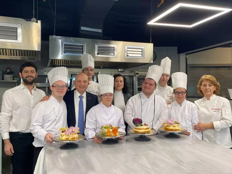 “İstinye Üniversitesi Vadi Yerleşkesi'nde gerçekleşen son derste, Gastronomi ve Mutfak Sanatları Bölümü'ne katılan down sendromlu öğrenciler, yaptıkları pastaları sundu.