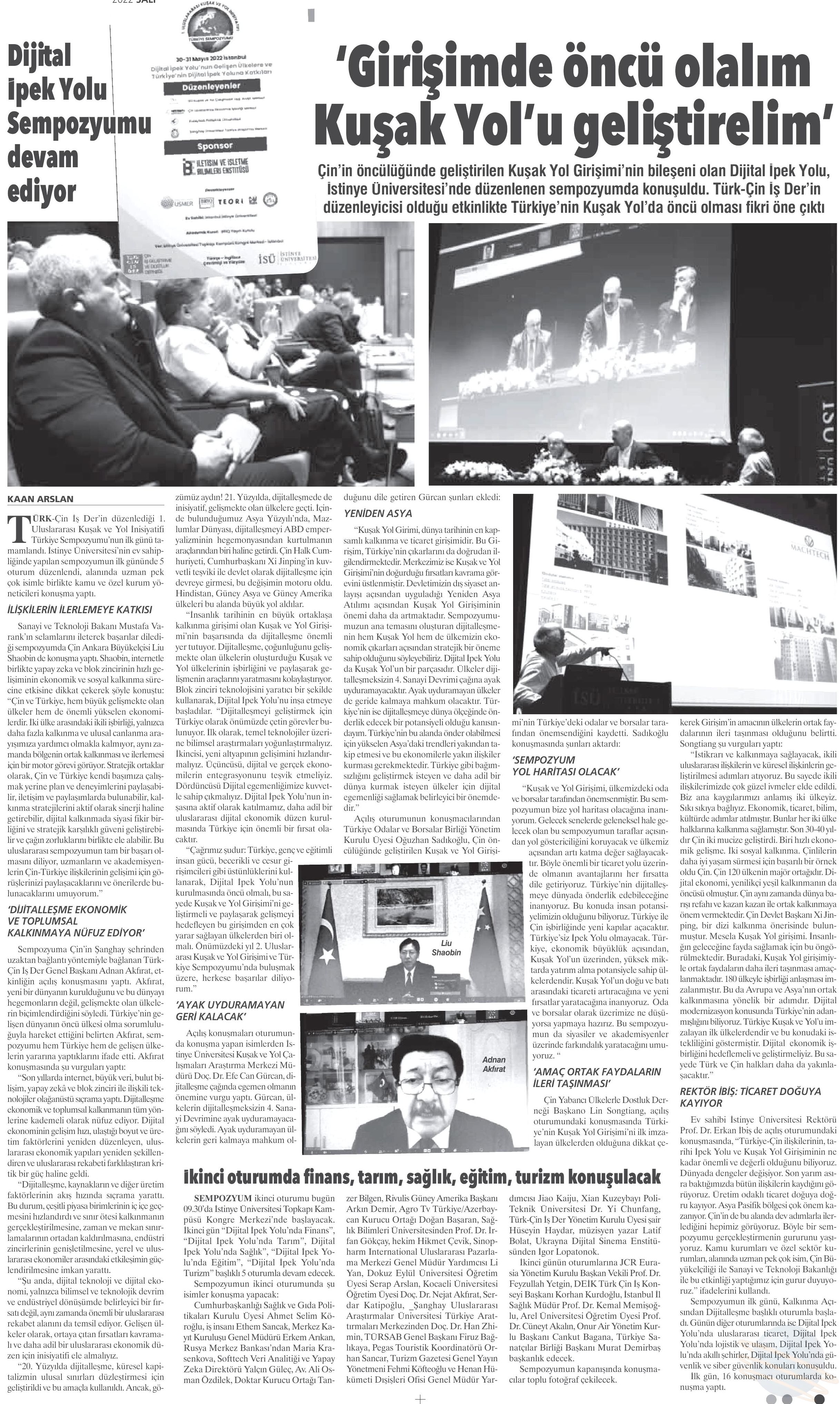 "İnsanlık tarihinin en büyük ortaklaşa kalkınma girişimi olan Kuşak ve Yol Girişimi'nin başarısında da dijitalleşme önemli yer tutuyor. Dijitalleşme, çoğunluğunu gelişmekte olan ülkelerin oluşturduğu Kuşak ve Yol ülkelerinin işbirliğini ve paylaşarak gelişmenin araçlarını yaratmasını kolaylaştırıyor. Blok zinciri teknolojisini yaratıcı bir şekilde kullanarak. Dijital İpek Yolu'nu inşa etmeye başladılar. "Dijitalleşmeyi geliştirmek için Türkiye olarak önümüzde çetin görevler bulunuyor. İlk olarak, temel teknolojiler üzerine bilimsel araştırmaları yoğunlaştırmalıyız. İkincisi, yeni altyapının gelişimini hızlandırmalıyız. Üçüncüsü, dijital ve gerçek ekonomilerin entegrasyonunu teşvik etmeliyiz. Dördüncüsü Dijital egemenliğimize kuvvetle sahip çıkmalıyız. Dijital İpek Yolu'nun inşasına aktif olarak katılmamız, daha adil bir uluslararası dijital ekonomik düzen kurulmasında Türkiye için önemli bir fırsat olacaktır.