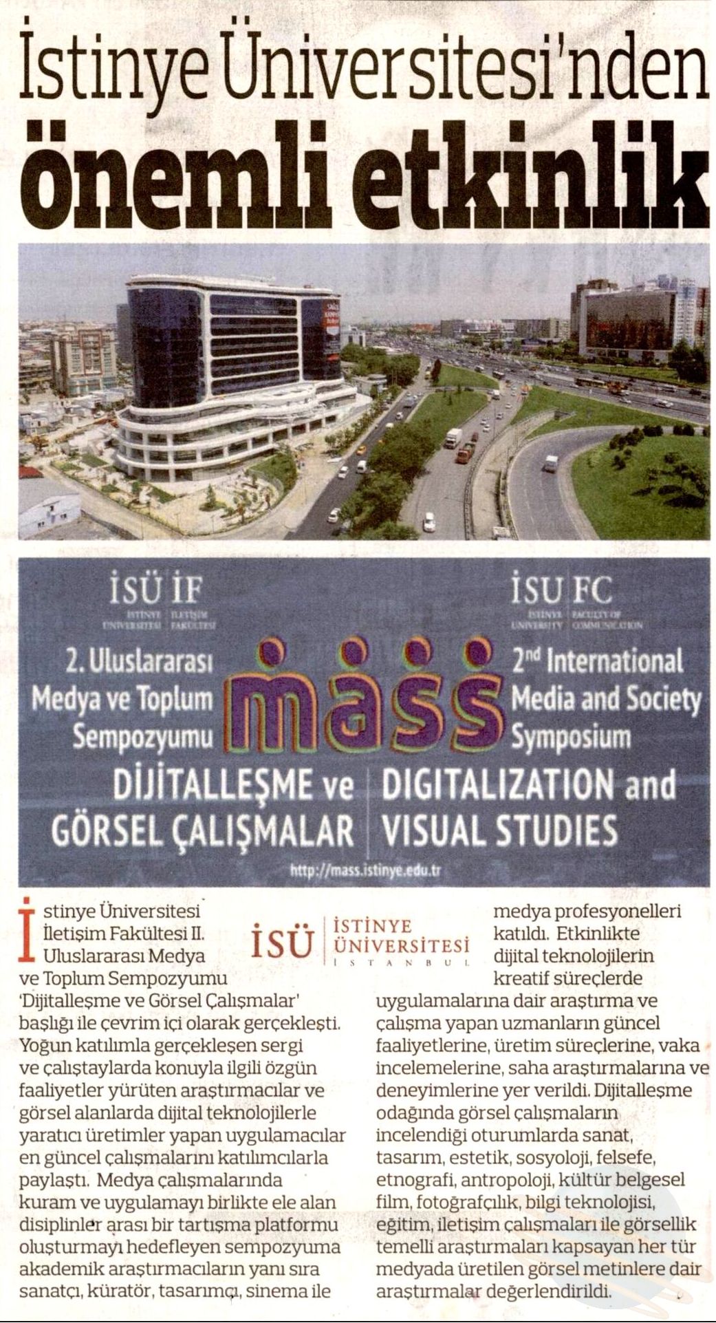 İstinye Üniversitesi Uluslararası Medya ve Toplum Sempozyumu 'Dijitalleşme ve Görsel Çalışmalar' başlığı ile çevrim içi olarak gerçekleşti. Yoğun katılımla gerçekleşen sergi ve çalıştaylarda konuyla ilgili özgün faaliyetler yürüten araştırmacılar ve görsel alanlarda dijital teknolojilerle yaratıcı üretimler yapan uygulamacılar en güncel çalışmalarını katılımcılarla paylaştı.