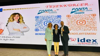 Doç. Dr. Ayfer ATAV ve Dr. Emre ÖVSAY İDEX 2024'de katılımcı diş hekimi ve diş hekimliği öğrencilerinin büyük ilgi gösterdiği sunum ve hands-on kurslar düzenledi. Sayın rektör yardımcısı Prof. Dr. Hatice GÜLEN, sunum yapan öğretim üyelerimizi ziyaret etti ve tebriklerini iletti.