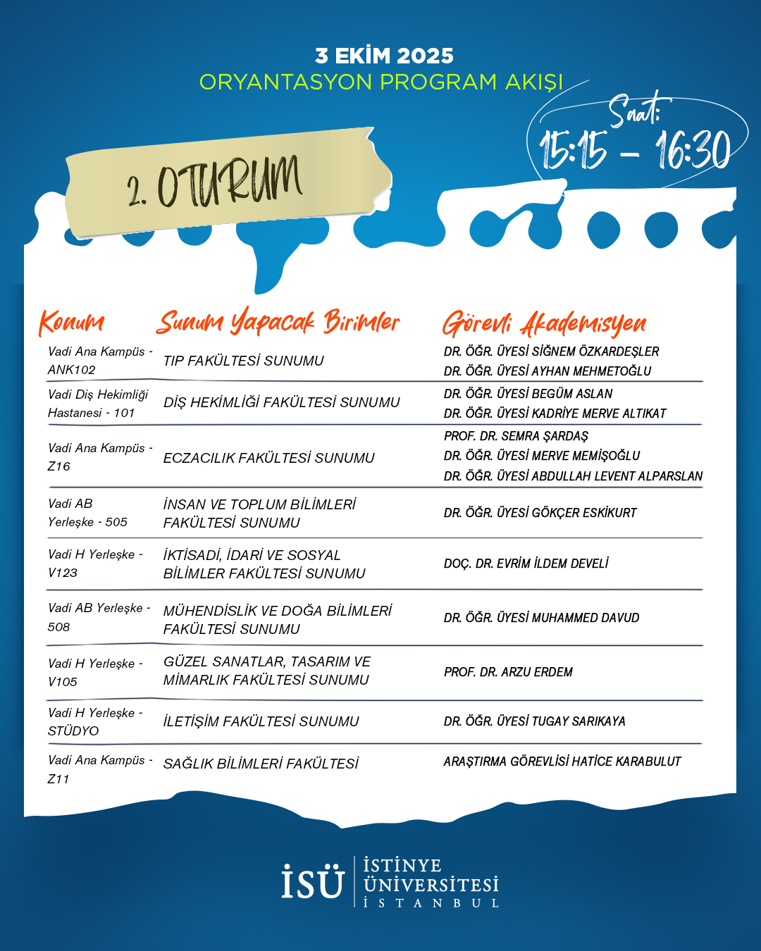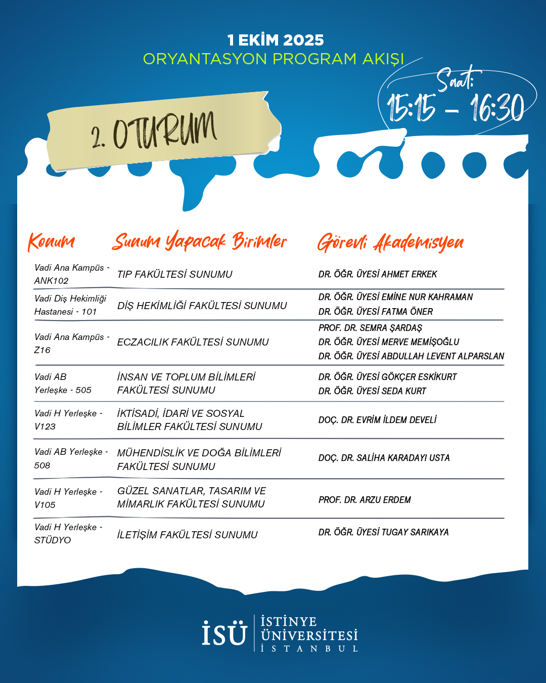 📅 1-2-3 Ekim 2025 tarihlerinde, Topkapı Kampüs, Vadi Ana Kampüs ve Vadi H Kampüs’te gerçekleştireceğimiz bu özel programda, sizleri üniversitemizin vizyonu ve değerleriyle buluşturacağız.