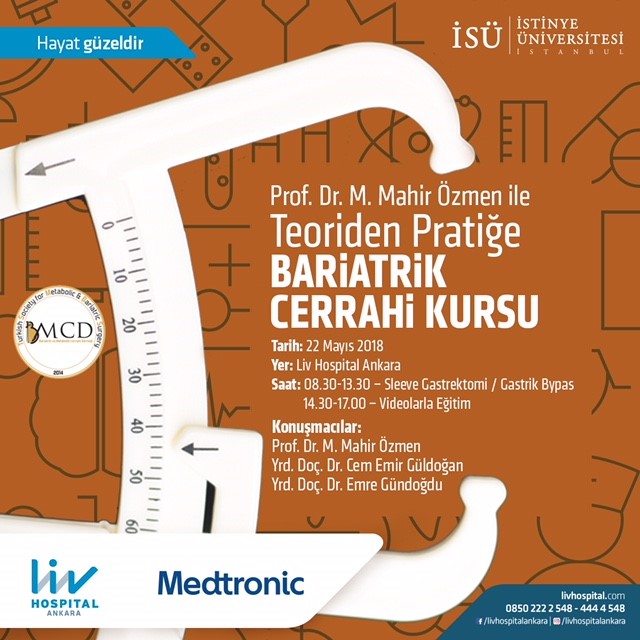 İstinye Üniversitesi ve Liv Hospital işbirliğinde düzenlenen Prof. Dr. M. Mahir Özmen ile Teoriden Pratiğe Bariatrik Cerrahi Kursu, 22 Mayıs 2018 tarihinde Liv Hospital Ankara’da gerçekleştirilecek.