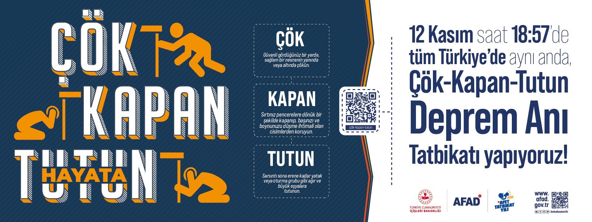 Düzce Depreminin yıldönümünde, İç İşleri Bakanlığı ve AFAD tarafından edilen ülke genelinde bir deprem tatbikatı gerçekleştirilecektir. 12 Kasım 2022 Cumartesi günü saat 18.57’de gerçekleştirilecek tatbikat kapsamında radyo ve televizyonlarda duyurular yapılacağı ve cep telefonlarına aynı anda mesaj gönderileceği bilgisi paylaşılmıştır. Tatbikat hakkında bilgiye afad.gov.tr adresinden ulaşabilirsiniz. Bilgilerinize sunarız.