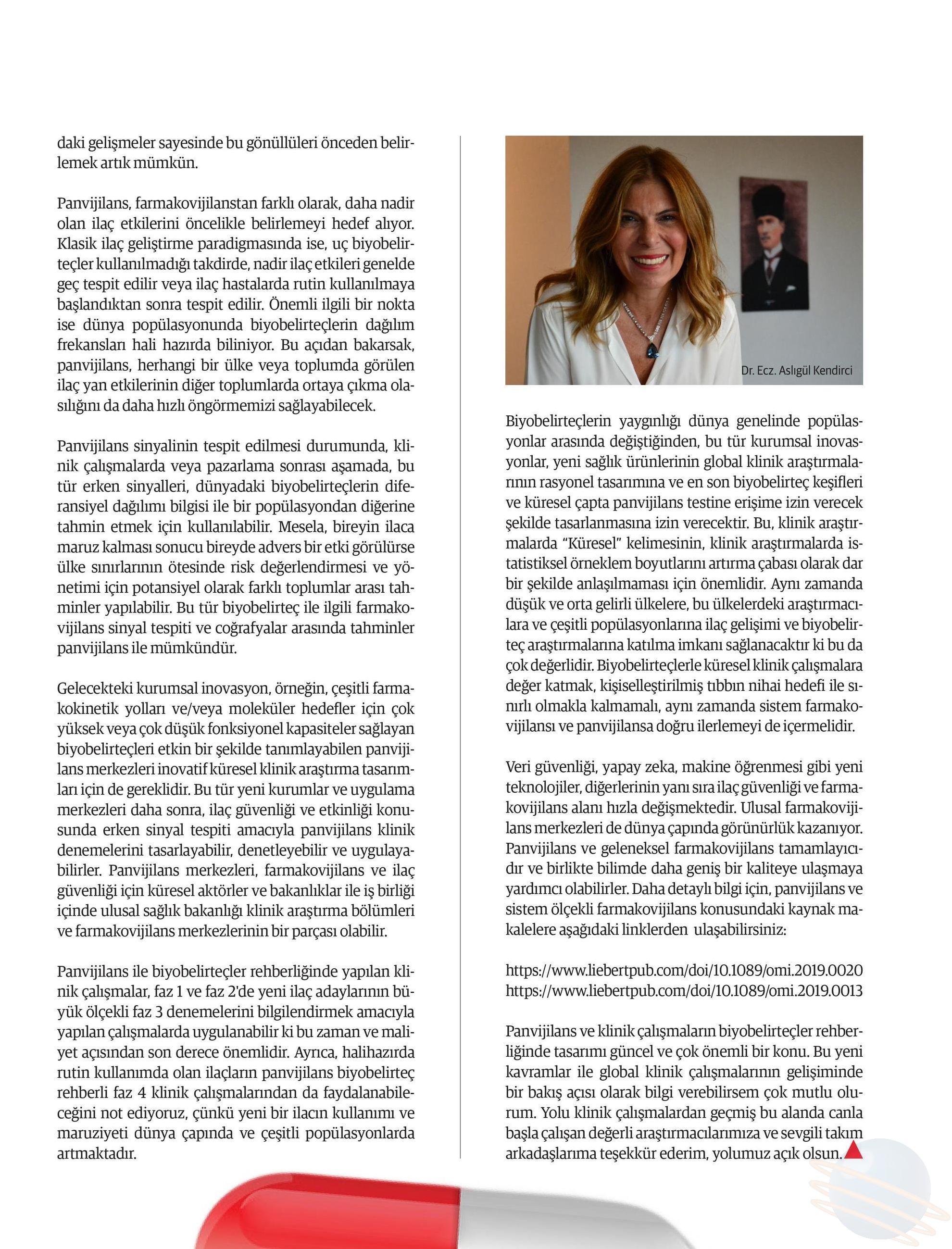 Dr. Ecz. Aslıgül KENDİRCİ, Tıbbın Ustaları Dergisine Değerlendirdi