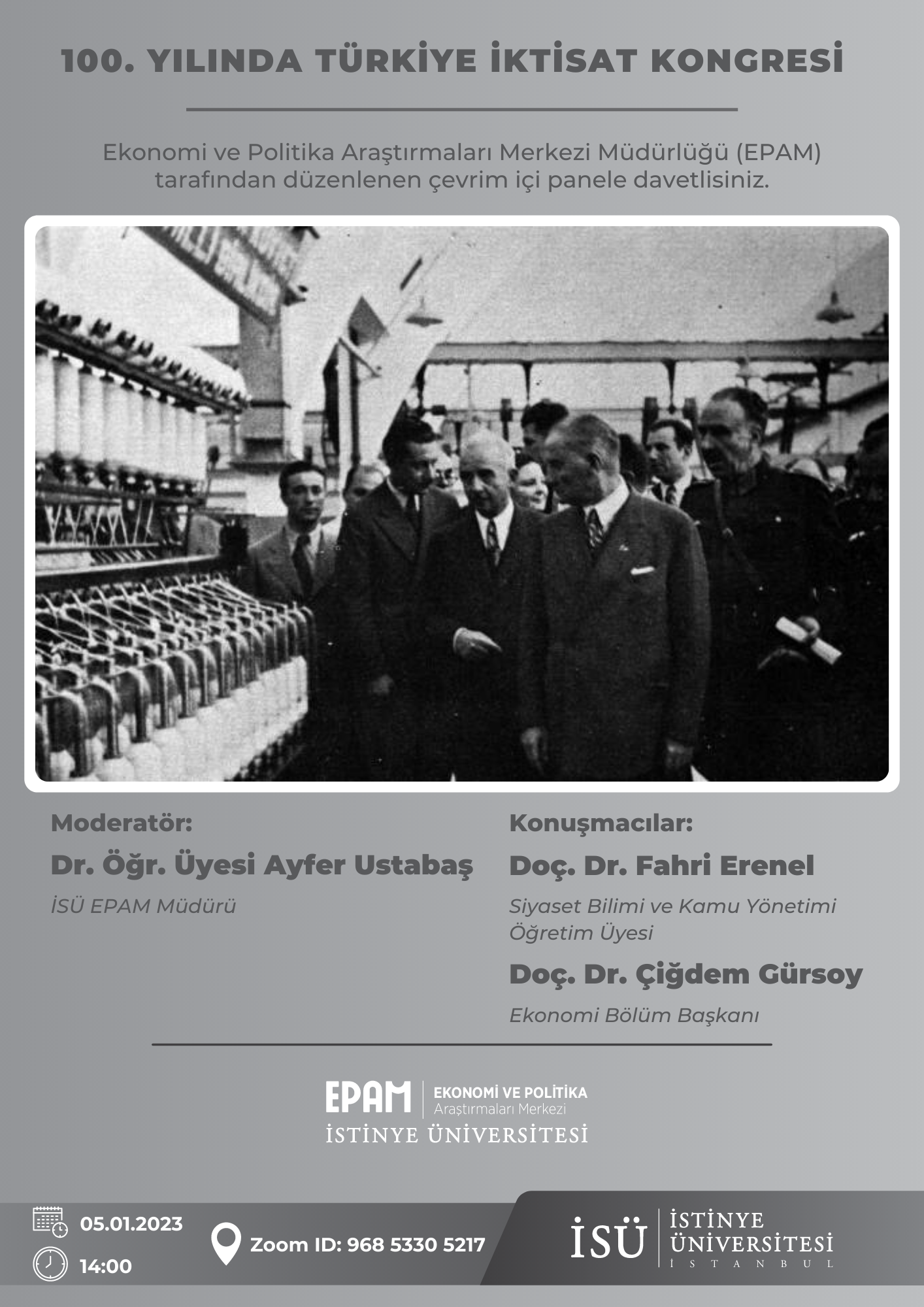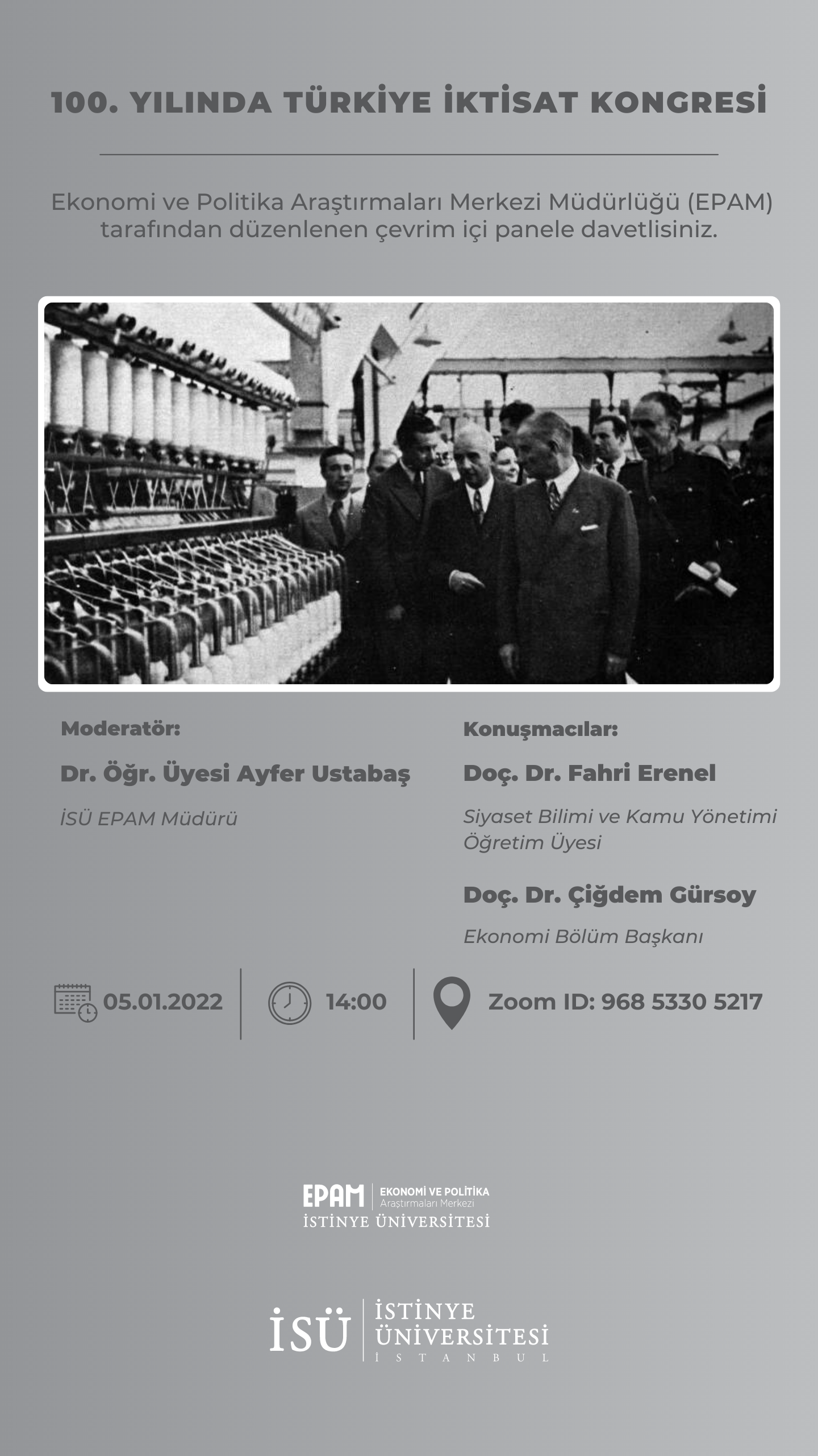 İstinye Üniversitesi Ekonomi ve Politika Araştırmaları Merkezi Müdürlüğü (EPAM) tarafından 5 Ocak Perşembe günü saat 14:00'te çevrim içi olarak gerçekleştirilecek etkinliğe davetlisiniz.