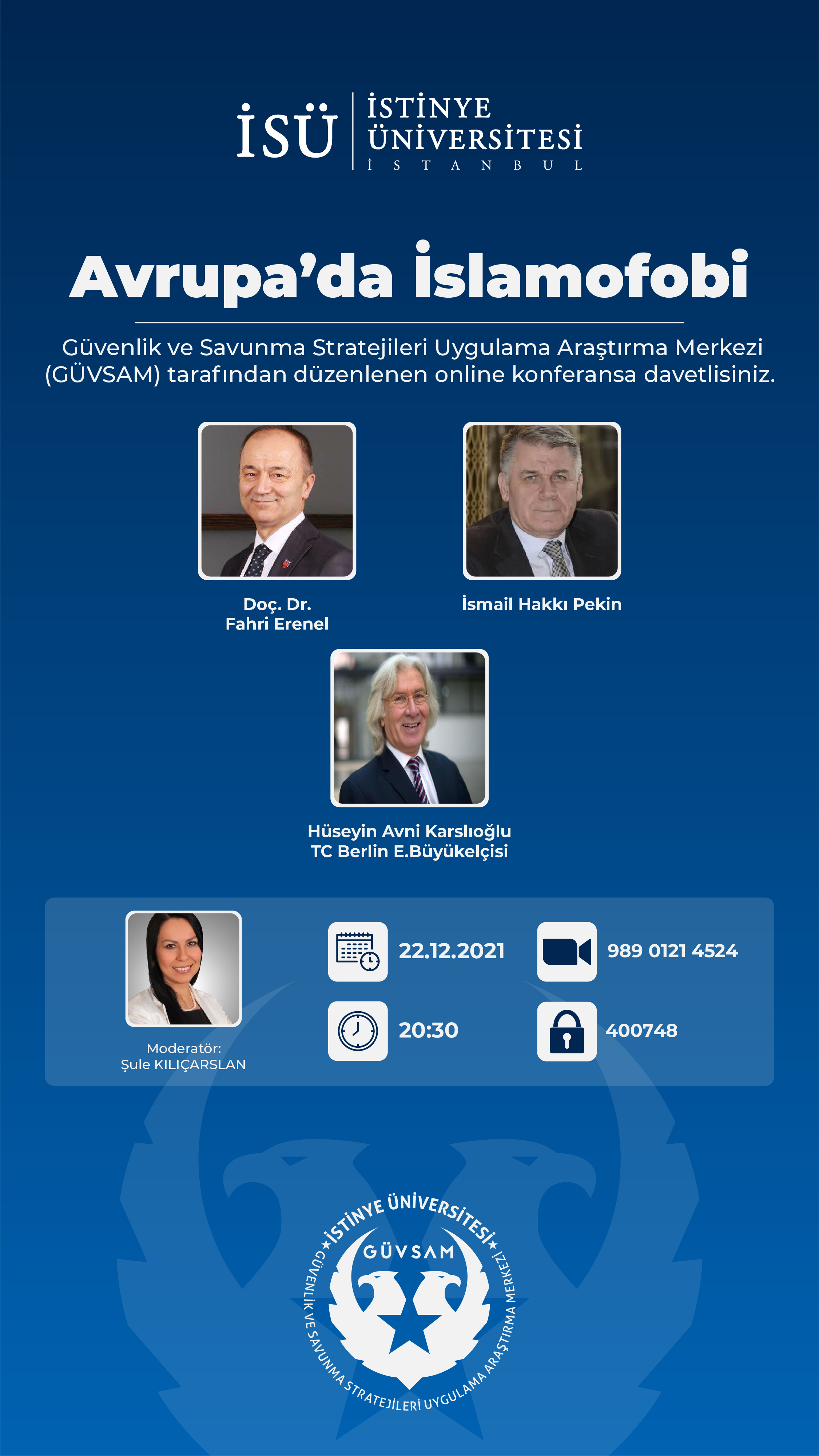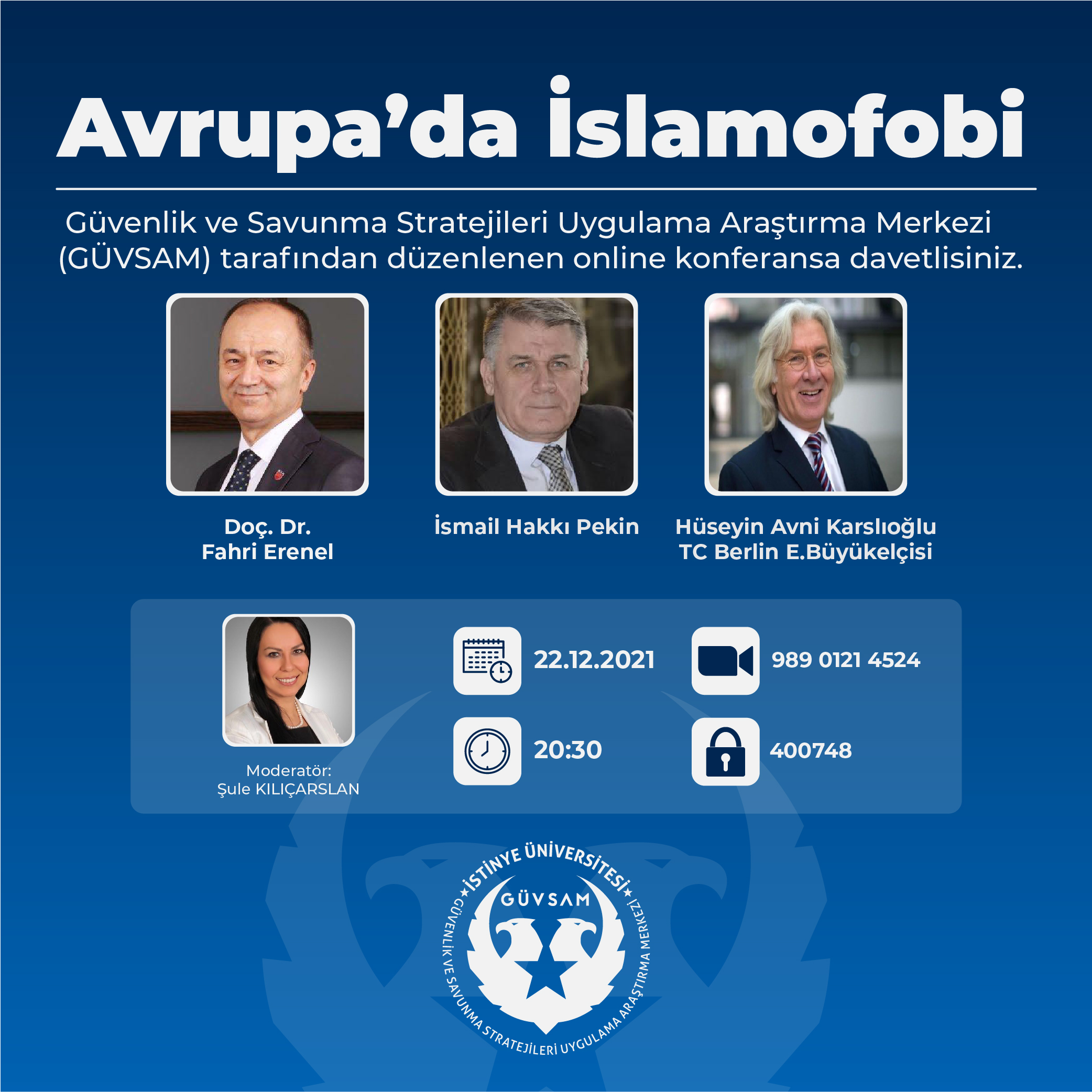 Güvenlik ve Savunma Stratejileri Uygulama Araştırma Merkezi ( GÜVSAM ) tarafından 22 Aralık Çarşamba Günü saat 20.30'da çevrimiçi olarak gerçekleştirilecek etkinliğe davetlisiniz.