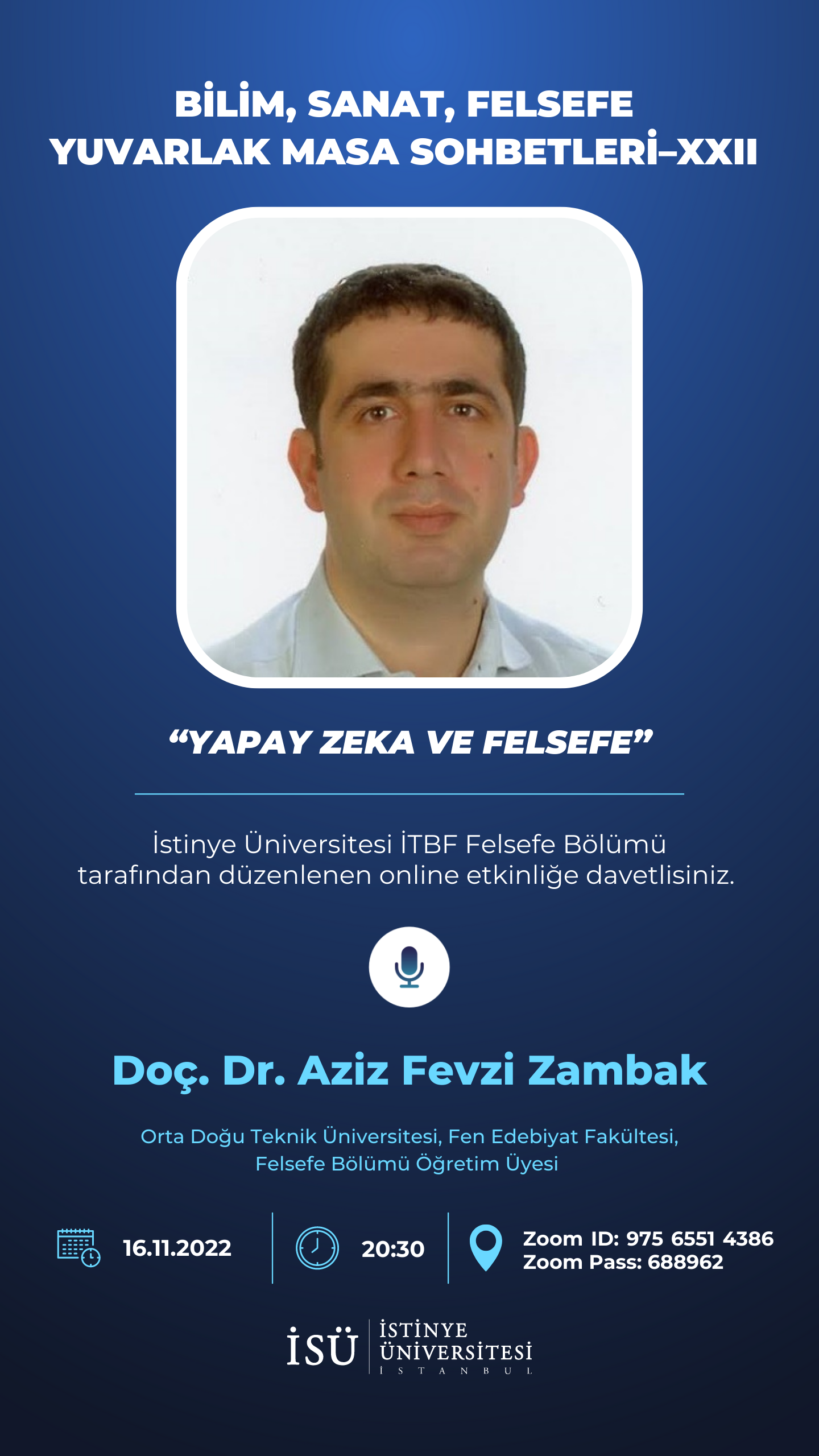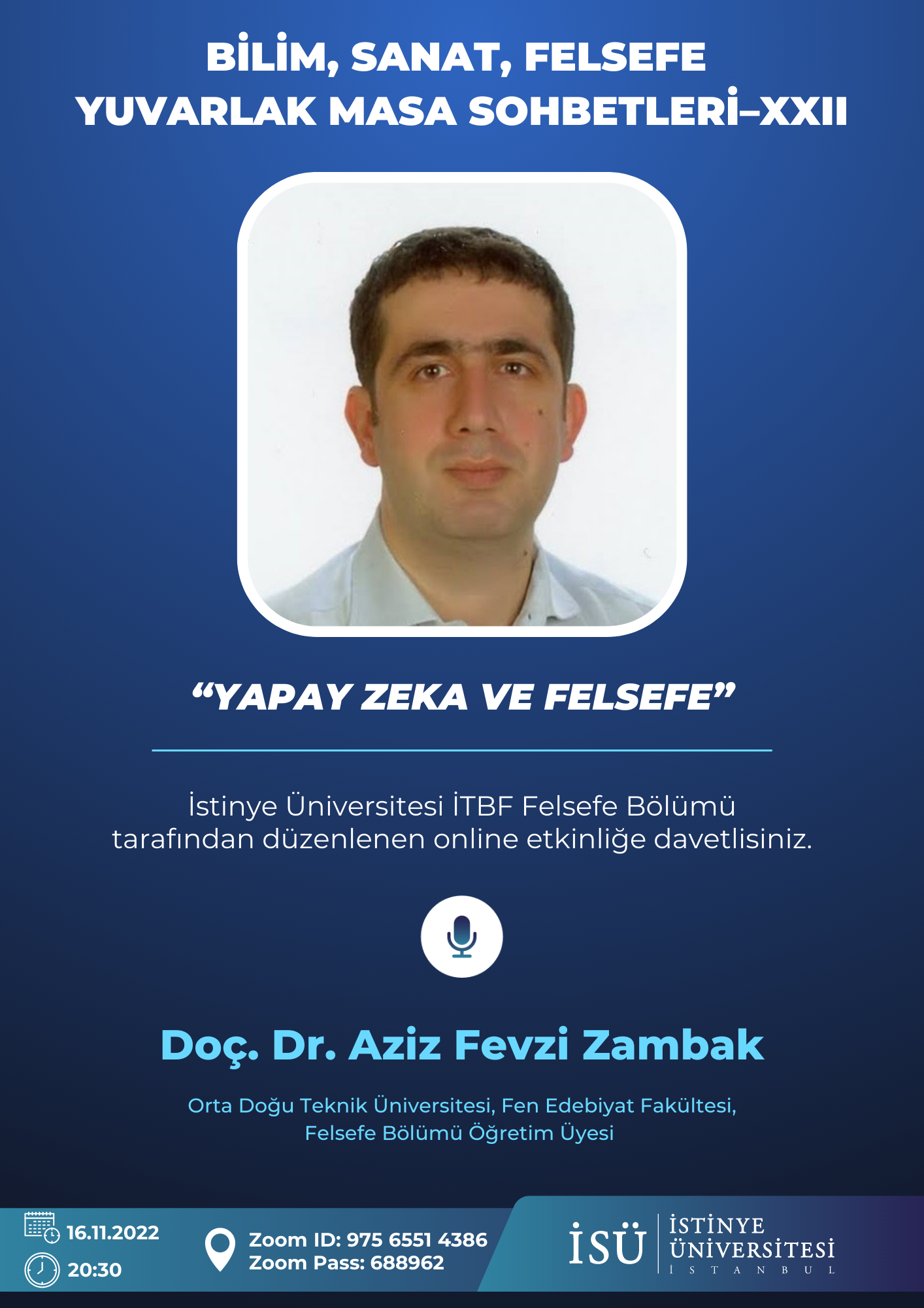 Etkinlik: Bilim, Sanat, Felsefe Yuvarlak Masa Sohbetleri–XXII “Yapay Zeka ve Felsefe”