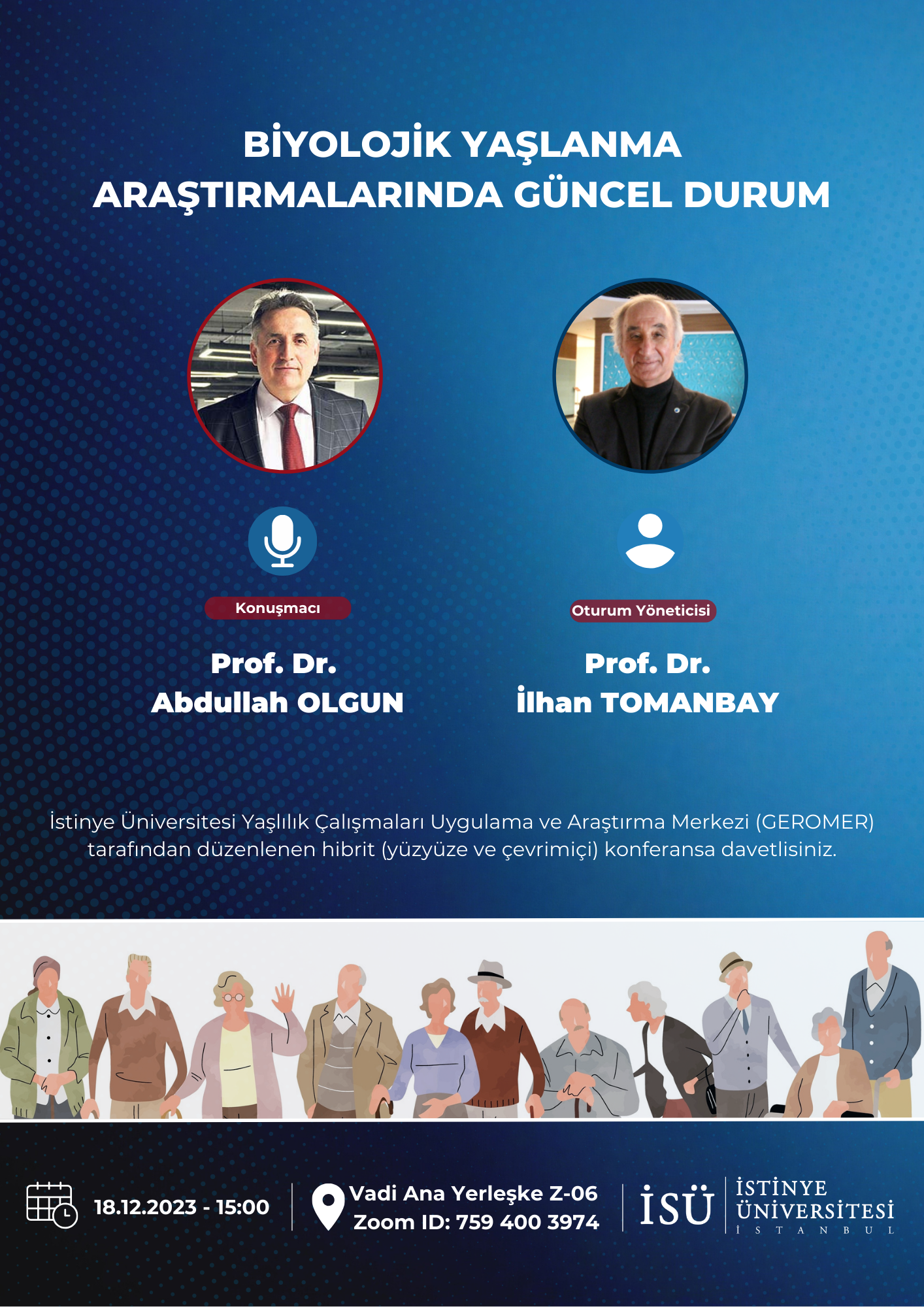 İstinye Üniversitesi Yaşlılık Çalışmaları Uygulama ve Araştırma Merkezi (GEROMER) tarafından 18 Aralık 2023 Pazartesi günü saat 15:00'te gerçekleştirilecek konferansa davetlisiniz.
