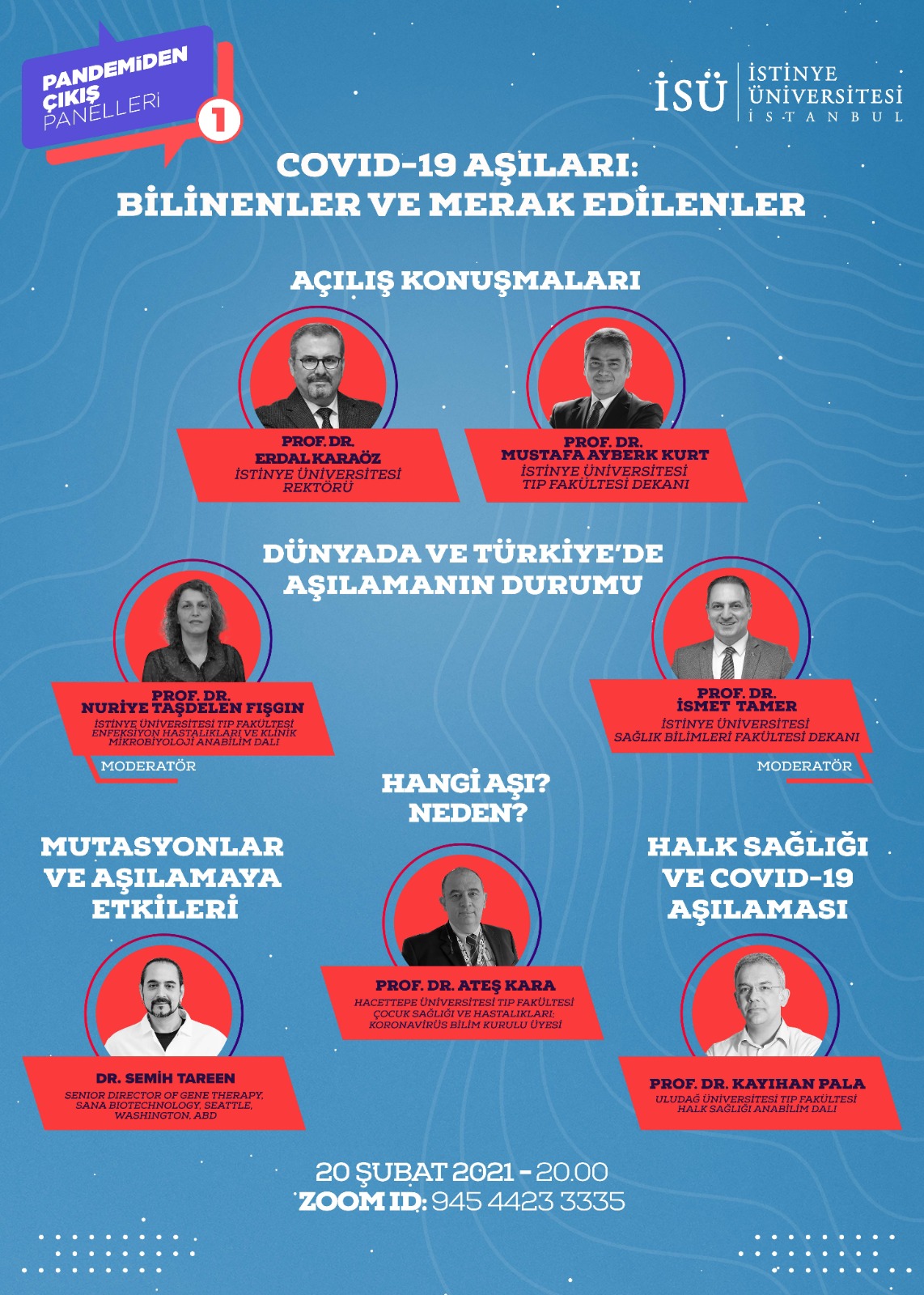 20 Şubat Cumartesi saat 20:00'de gerçekleşecek ilk panelde, her biri alanında uzman bilim insanları Covid-19 aşıları ile ilgili en güncel gelişmeleri değerlendirecek.
